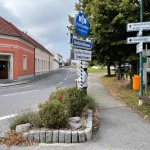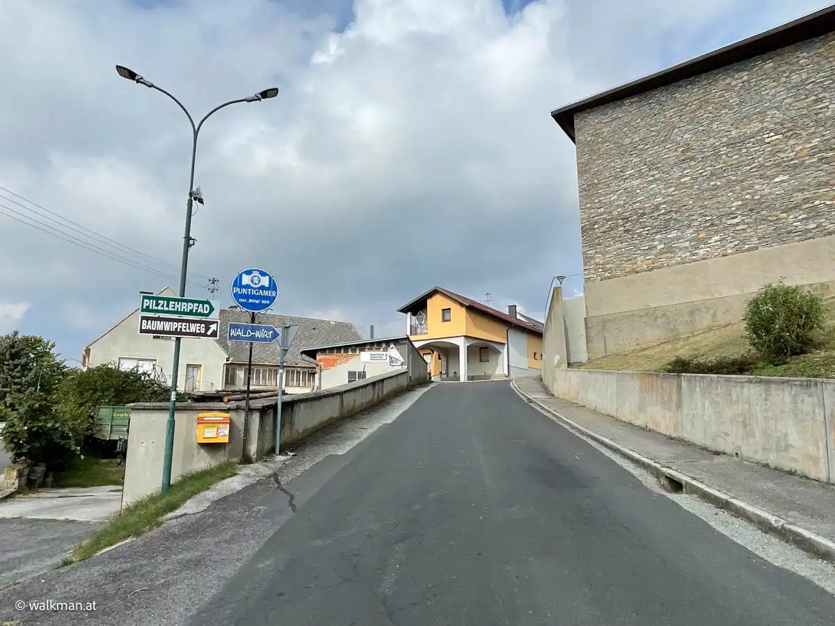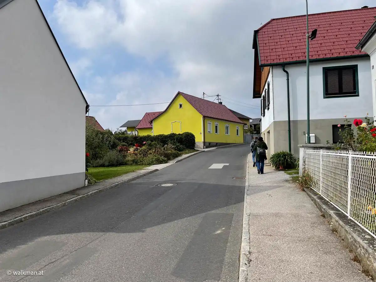 Und genauso war‘s dann auch. Das Wetter war perfekt an diesem Herbsttag. Nicht zu warm, nicht zu kalt und auch der Wind hielt sich in Grenzen. Also packten wir unsere sieben Wandersachen und fuhren los, Richtung Markt Neuhodis, unserem Startpunkt. Am Weg noch kurz beim Billa stehen geblieben, Jause gekauft, und bald hatten wir auch einen Parkplatz gefunden im Ort.