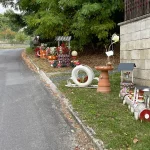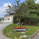 Eine optische Abwechslung bietet der Ort durch seine Gebäude und Gärten, wie am oberen Bild. Originell geschmückte Vorgärten, abwechslungsreiche Stile an den Häusern und auch mal ein steinernes Jesuskreuz mitten in einem Garten. Hat für uns auch etwas Mystisches, die Ortschaft, das lässt sich nicht verleugnen.
