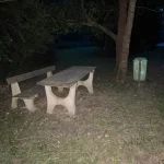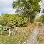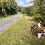 Bald darauf – 1,5 Kilometer später – hatten wir diese dann auch erreicht. Aus dem Wald heraus tretend erblickten wir an einer Wegkreuzung ein Biotop mit Rastmöglichkeit. Da wir die letzten beiden Kilometer ziemlich rasch bewältigt haben, nutzten wir auch diese Bank für eine Erholung. Wir waren ja nicht auf der Flucht.