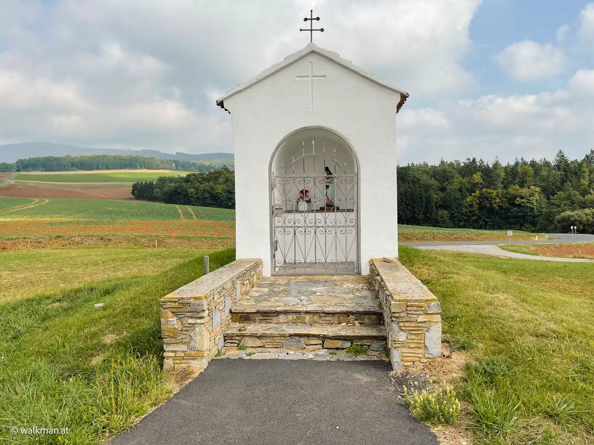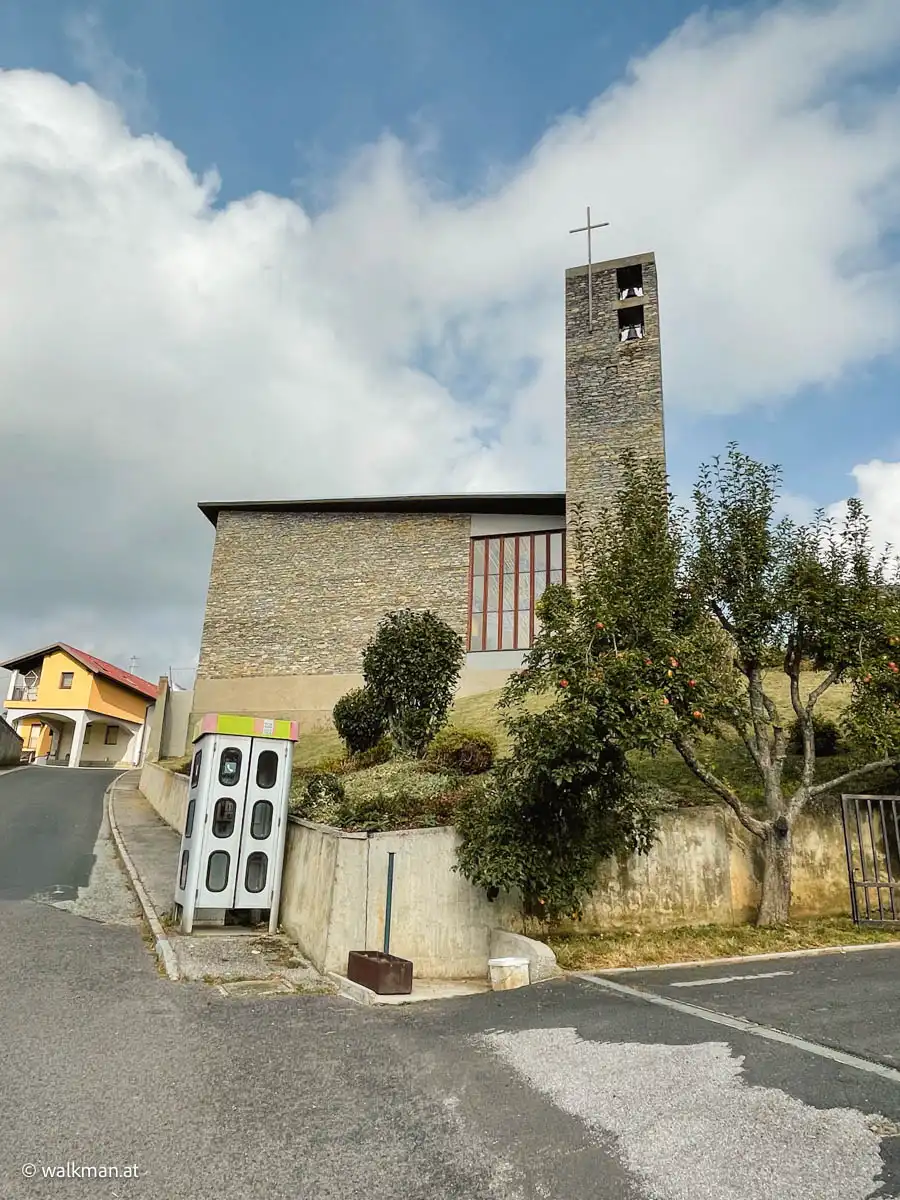 Bei Kilometer 2,2 passieren wir die Ortstafel von Althodis und wandern durch den Ort. Gleich am Beginn des Ortes befindet sich eine Kirche samt dem Friedhof. Ein etwas ungewöhnlicher Empfang für Wanderer. Aber so ists nun mal. Hier befindet sich auch das Kriegerdenkmal zum Gedenken an die Gefallenen der beiden Weltkriege.