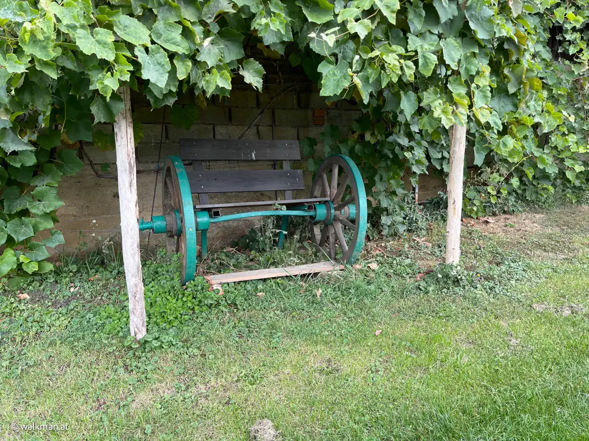 Was aber wiederum toll ist, das hier in Abständen, immer wieder Sitzmöglichkeiten zu finden sind. Da hat sich der Tourismusverband sichtlich Gedanken gemacht. Eine davon nutzen wir für eine kleine Pause. Nicht auch zuletzt, weil sich meine Gefährtin leicht überknöchelt hat und der Fuß ein wenig schmerzt. Und auch Junior jammert schon ein wenig. Der Einzige der heute ausnahmsweise mal nicht jammert, ist jener, der früher immer als Erster eine Pause gebraucht hat: meinereiner. Und da war ich schon stolz drauf auf die hunderten Kilometer, die ich heuer bereits gewandert bin. Ein bisschen Eigenlob darf auch mal sein.