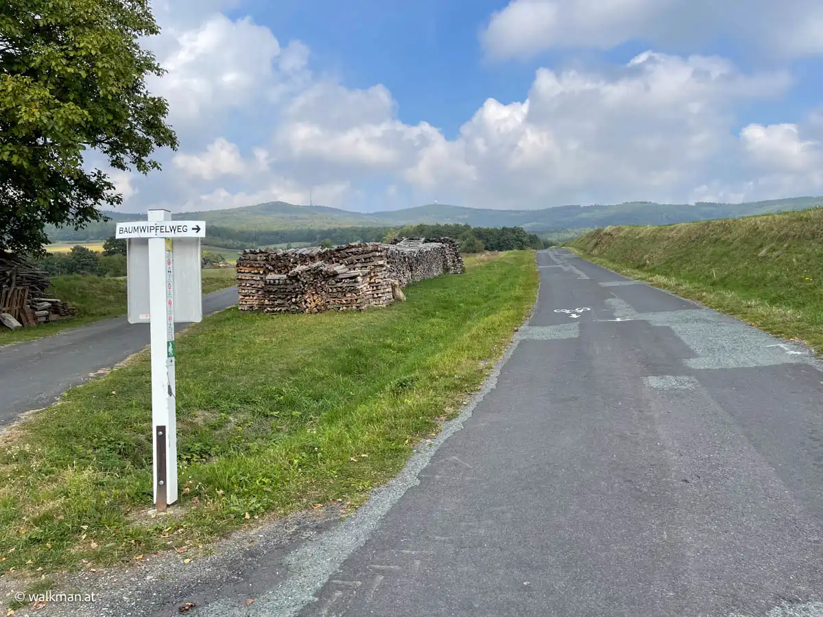 Nahe der Mühle starteten wir zunächst mal Richtung Althodis. Der weg führt hier anfangs flach dann stetig ansteigend zuerst durch die Gassen von Markt Neuhodis, nach Norden abzweigend, in weiterer Folge über Feldwege und eine Hügelkuppe in den Nachbarort rauf. Dieses Teilstück ist angenehm und unproblematisch zu gehen.