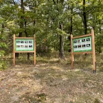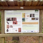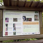 Nach etwa 3,9 Kilometer der Strecke – und auch bereits einigen Höhenmetern – sind wir dankbar über die Rastmöglichkeit, die sich uns bietet. Eine Bank, welche die verständnisvolle Gemeinde Neuhodis mit Sicherheit aus genau diesem Grund hier platziert hat. Danke sehr! Gegenüber der Bank entdecken wir zwei weitere Info-Tafeln des Pilzlehrpfades.