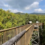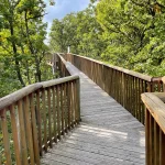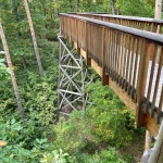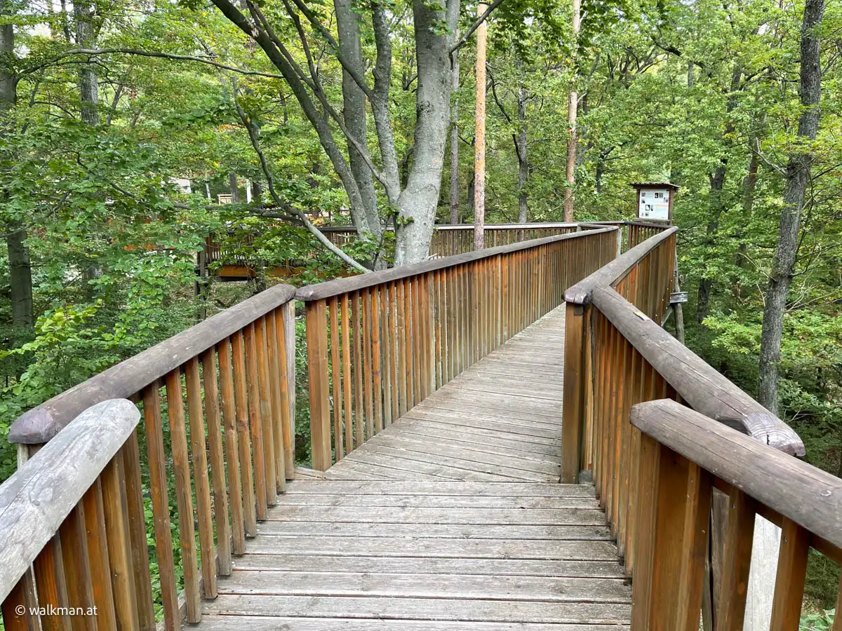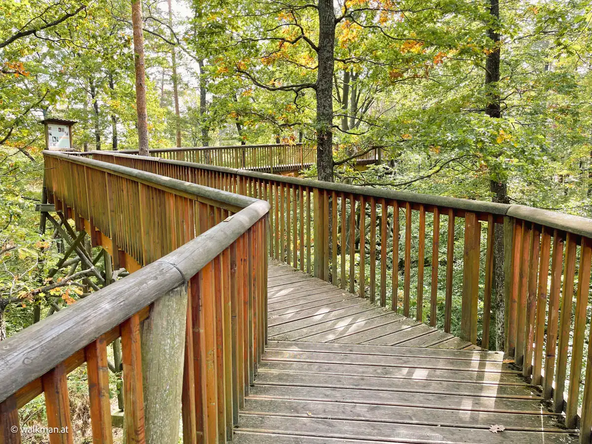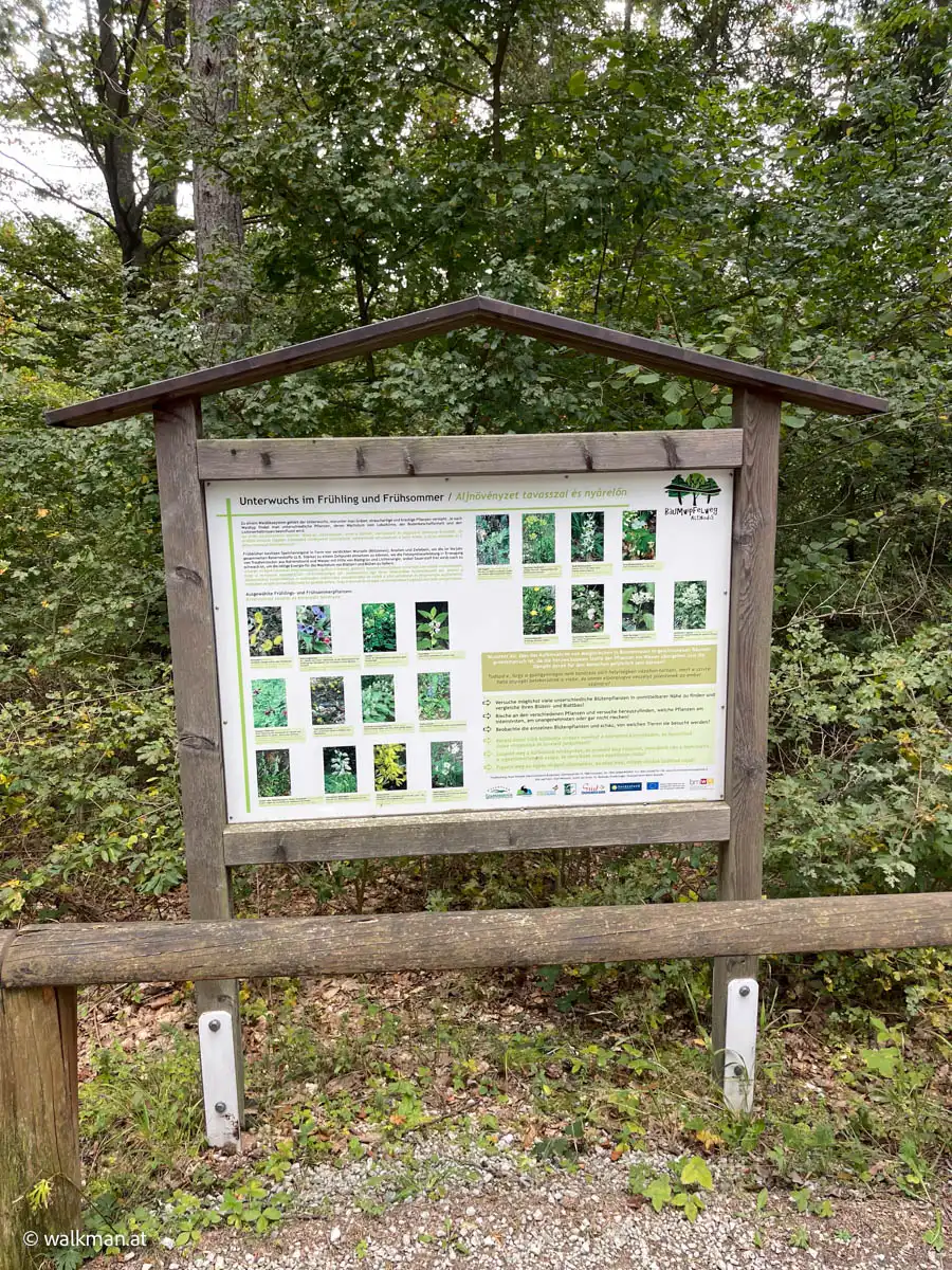 Wir bezahlen den Eintritt (als wir hier sind, waren es € 6,- pro Erwachsenem) und wandern über die mächtigen Rampen zwischen den Bäumen hindurch. Nähere Informationen über den Baumwipfelweg findet ihr unter diesem Link. Immer weiter gehts auf den Holzrampen hinauf, abermals vorbei an vielen Info-Tafeln.
