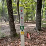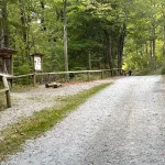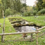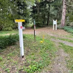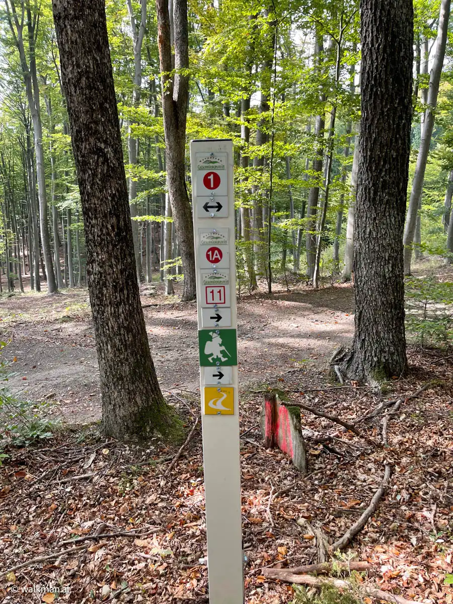 Hier kommen wir bei einem Platz vorbei, an dem im Frühling, um Ostern herum, Unmengen an Märzenbecher zu finden sind, so zumindest einer Informationstafel nach. Kurze Zeit später kreuzen wir den „Kreisverkehr“ im Wald. Einen Schnittpunkt einiger Routen. Hier gilt es mal den richtigen Weg raus zu finden. Aber auch das schaffen wir.