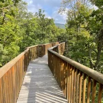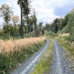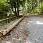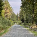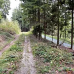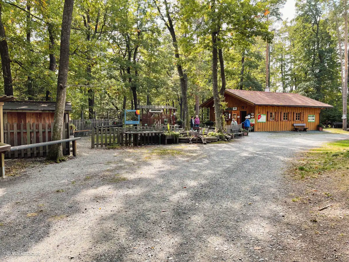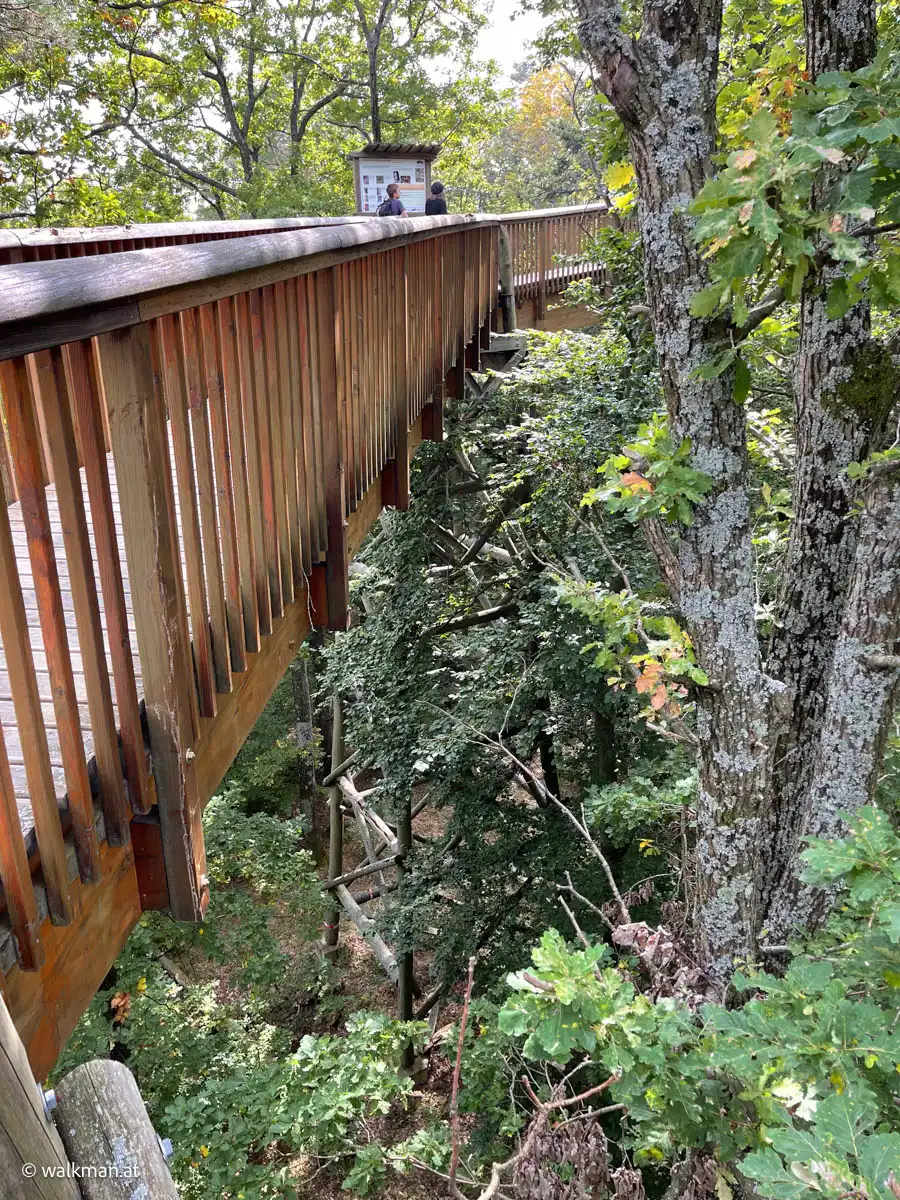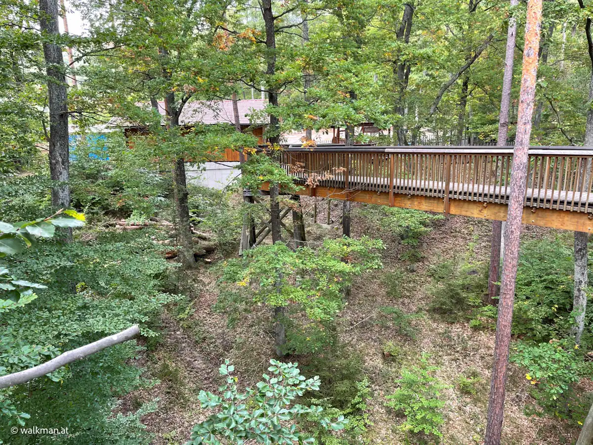 Und bald haben wir auch das geschafft. Über einen letzten kleinen Hügel drüber sehen wir auch schon den Parkplatz zum Baumwipfelweg und bringen die letzten, relativ eben verlaufenden, Meter auch noch hinter uns. Hier gehts nun links hinein, unsere Streckenführung verlassend, dieses Highlight hinzufügend.
