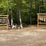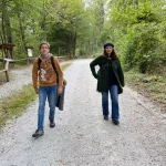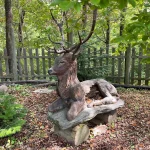 Aber ein wenig wandern ist noch erforderlich bis zum Weg. Der breite Schotterweg, in Form einer Allee durch den Wald hindurch, ist gesäumt mit einer Mischung aus informativen und unterhaltsamen Stationen. Mal dürfen wir, in Beton gegossene Spuren der Wildtiere begutachten. Ein anderes Mal holen wir uns Infos über Fauna und Flora.