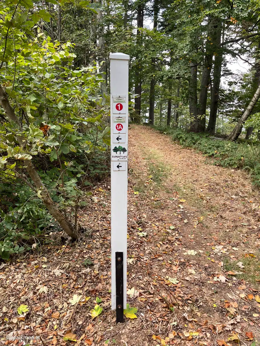 Beschildert ist der Weg übrigens auch. Allerdings nicht lückenlos. Das Handy zur Routenfindung dabei zu haben ist sicher kein Fehler. Wir wandern also weiter bergauf. Zwei Drittel des Aufstiegs haben wir beim Baumwipfelweg schon absolviert und das letzte Drittel schaffen wir auch noch. So motivieren wir uns, denn hier erfährt die Steigung noch mal eine Steigerung. Ohne Fleiß – kein Preis.