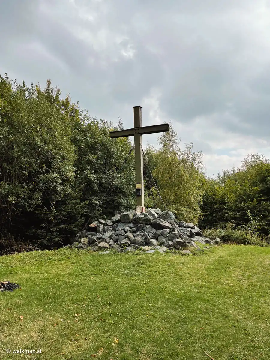 Ausgerastet brechen wir nach 30 Minuten wieder auf. Richtung Hirschenstein. Den Weg zurück, vorbei an den Stationen zur Kreuzung beim Parkplatz. Hier links abgebogen und schon findet der aufsteigende Weg von vorhin seine Fortsetzung. Ab hier allerdings nicht mehr auf Asphalt. Auf Schotterwegen gehts nun aufwärts.