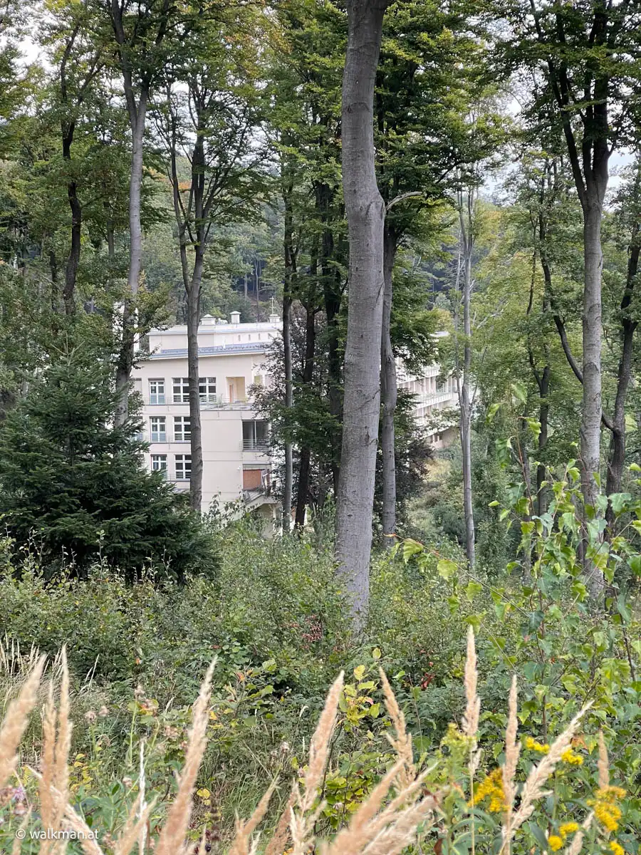 Diesen habe ich auf Google gefunden und natürlich wollten wir erkunden, wie diese aussieht. Hat ja auch was Abenteuerliches, so ein „Lost Place“. Doch zuvor gilt es noch den Abstieg bis dorthin zu schaffen. Und vor allem den richtigen Weg zu wählen. Aber bald erblicken wir unser Ziel dann. Die aufgelassene Heilanstalt am Hirschenstein.