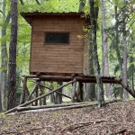 Kurze, halbwegs flache Abschnitte sorgen dann aber wieder für eine kleine Erholung. Für die nächste Steigung. Am Ende des Schotterwegs beginnt der allerletzte Abschnitt in Form eines Waldwegs. Vorbei an Hochsitzen, die teilweise hier ganz schön groß sind. Ob man da noch von Sitzen sprechen kann? Oder bereits von Lofts? Hoch-Lofts?