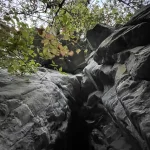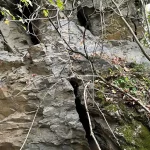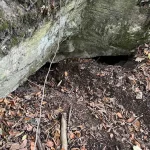 Also kraxelten Junior und ich in bester Bergsteiger-Manier den Steilen Hang, zwischen Bäumen hindurch rauf. Und waren, als wir vor der „Höhle“ standen, mindestens genauso enttäuscht. Der Begriff „Höhle“ ist dehnbar. Das mussten wir feststellen. Eigentlich würde eher „Felsspalte“ oder „Vertiefung“ passen. Mehr ist hier nämlich nicht.