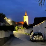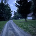 Mittlerweile war es bereits fast stockdunkel, als wir den Schotterweg entlang, etwa 500 Meter vor dem Ortsschild, Richtung Neuhodis wanderten. Da kam uns ein PKW entgegen. Mit Fernlicht. Und blieb etwa 100 Meter vor uns stehen, die Scheinwerfer auf uns gerichtet. „Was das für ein Komiker“, dachte ich bei mir. Bei meiner Gefährtin und Junior löste dies eher Unbehagen aus.