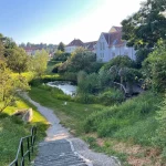 Eigentlich könnten wir hier nun auch durch den Park wandern und am anderen Ende unsere Route fortsetzen. Zumindest der Routenführung nach, die dort weiter geht. Aber wir wollen hier heute noch eine Schleife einbauen und uns eine Kapelle ansehen, die etwas zwischen Häusern versteckt, ein wenig weiter vorne liegt.