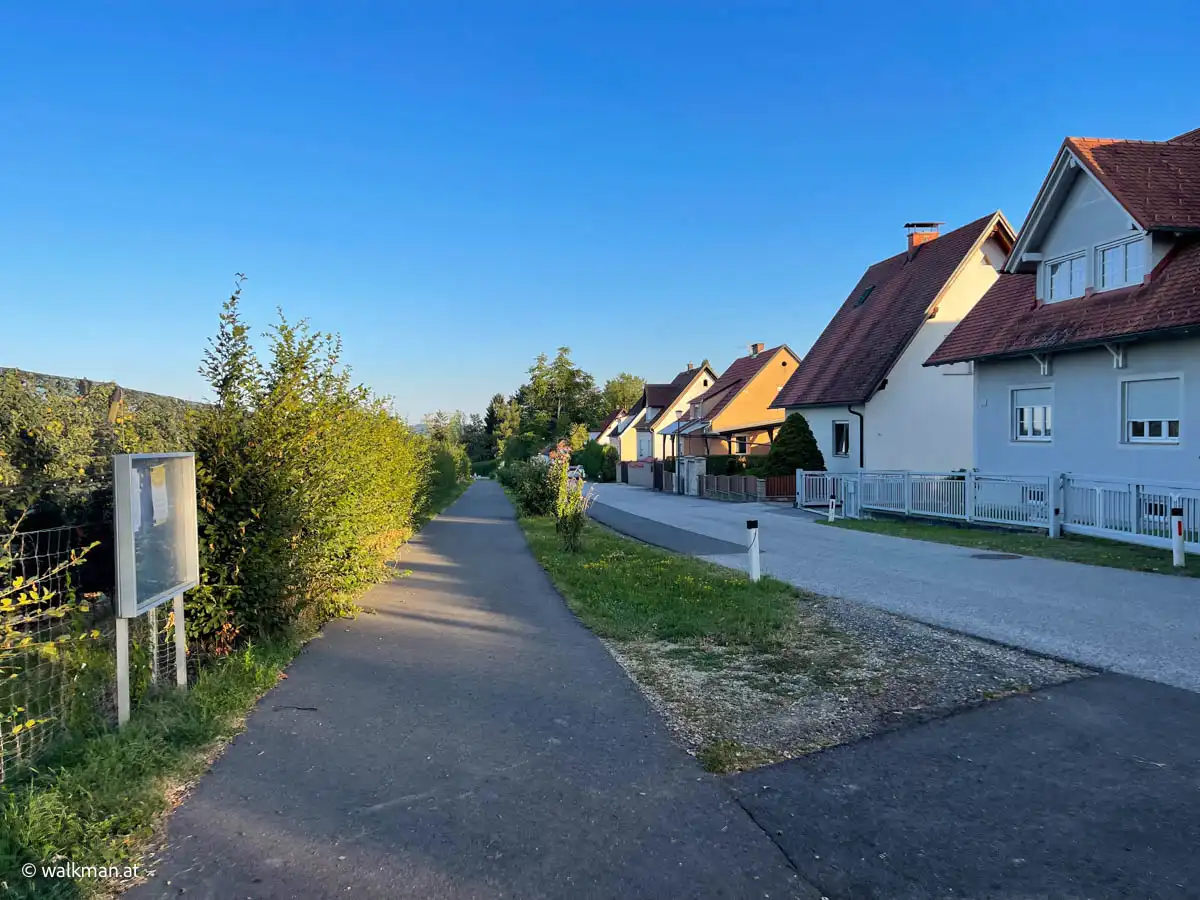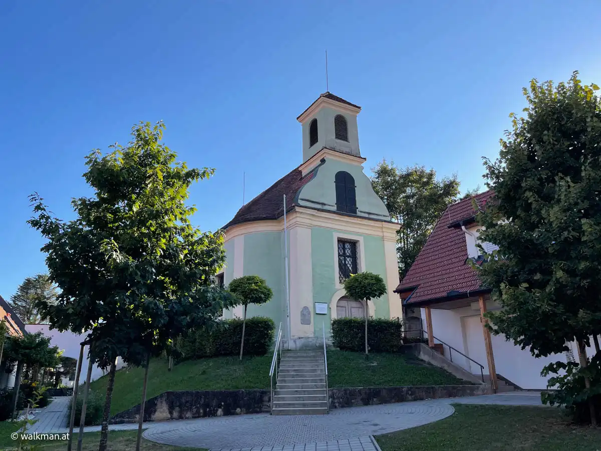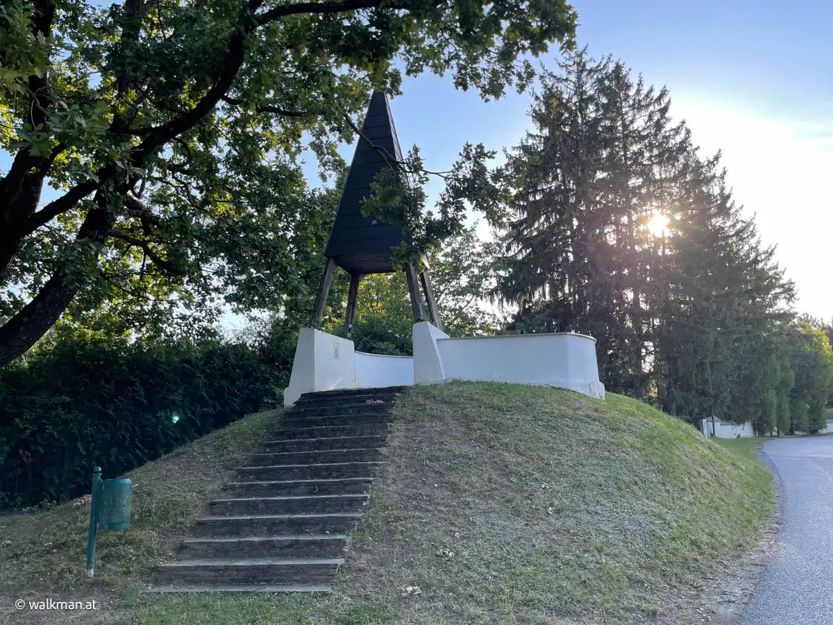 „Da haben sie recht. Vielen Dank!“, bedanke ich mich. Er weist uns auch gleich einen weiterfolgenden Weg aus dem Wohnkomplex raus, wo wir wieder auf unsere Route stoßen würden. Perfekt. Ich bedanke mich nochmals. Und schon marschieren wir die Stufen zur „Josefikapelle“ rauf.