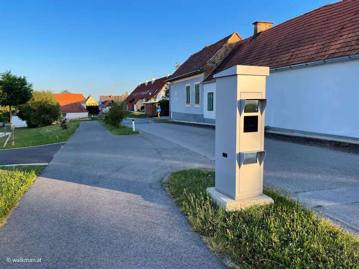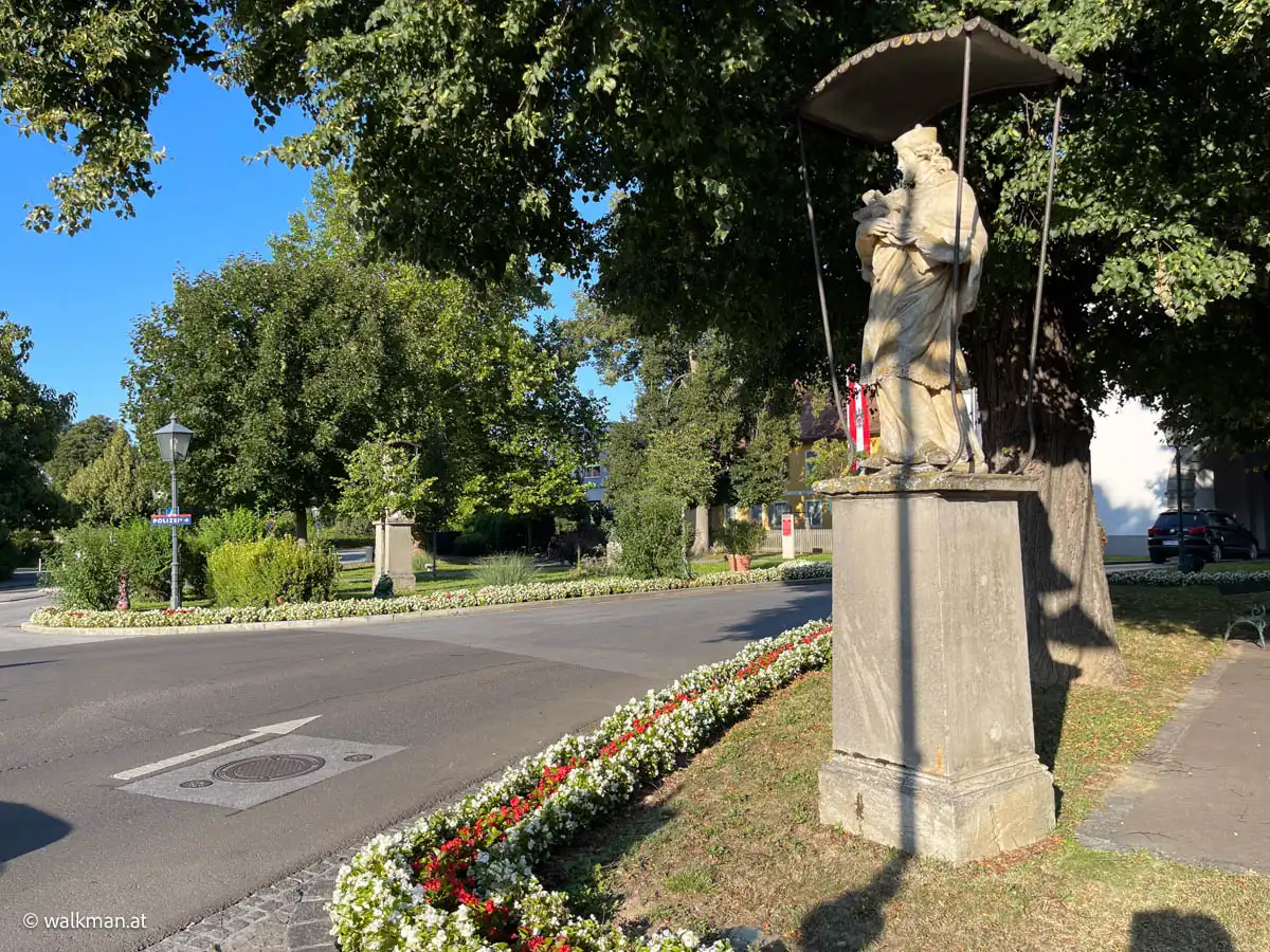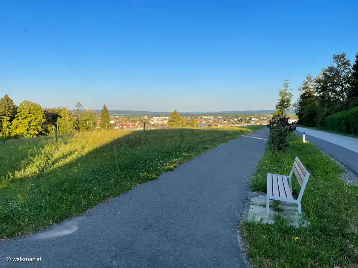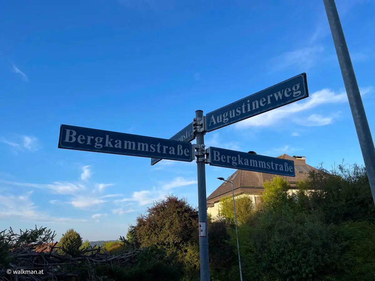 „Da haben sie recht. Vielen Dank!“, bedanke ich mich. Er weist uns auch gleich einen weiterfolgenden Weg aus dem Wohnkomplex raus, wo wir wieder auf unsere Route stoßen würden. Perfekt. Ich bedanke mich nochmals. Und schon marschieren wir die Stufen zur „Josefikapelle“ rauf.