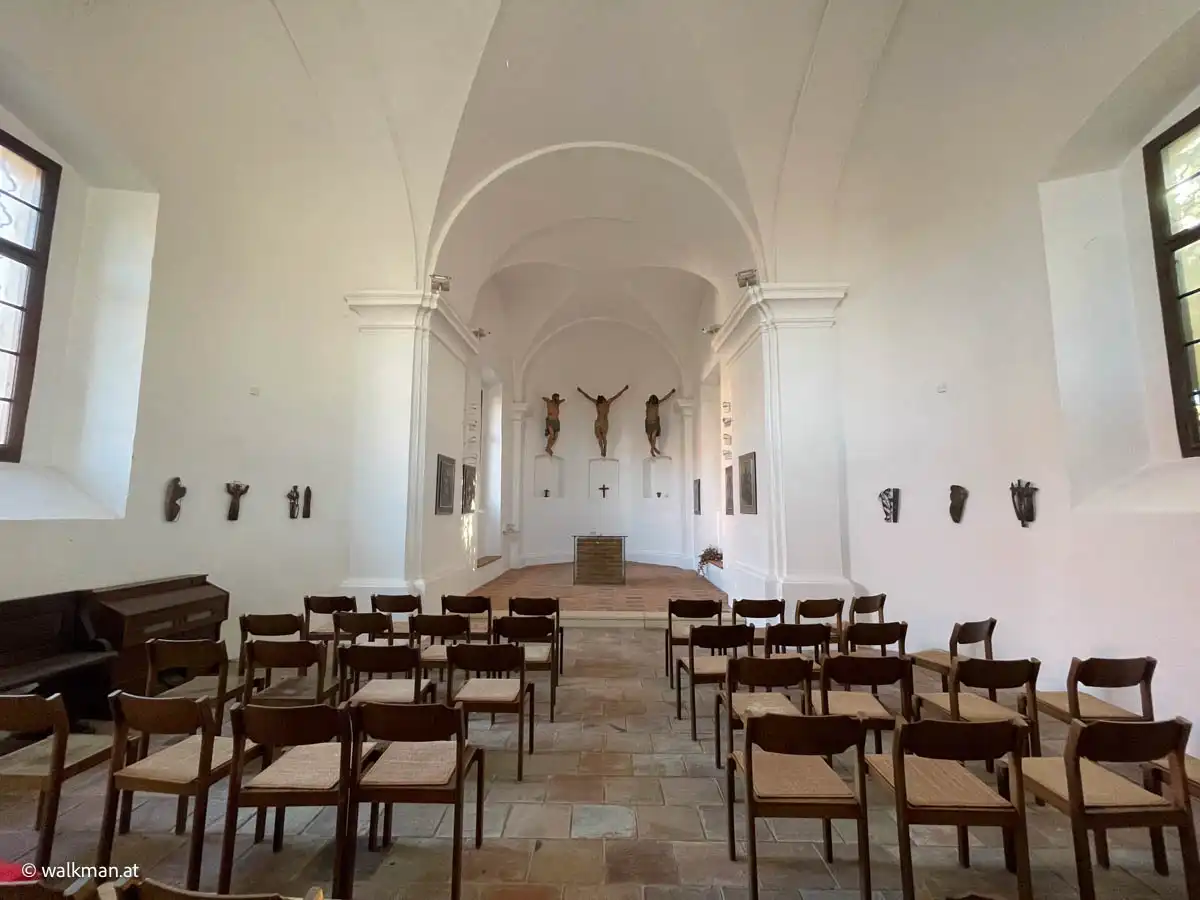 Eine einfache, aber schöne Kapelle. Erbaut um 1694. So informiert uns das Schild beim Eingang. Gestiftet von einem Stadtrichter. Da sieht man wieder mal, wie eng früher Klerus und Justiz miteinander verflochten waren. Undenkbar in heutigen Zeiten. Heute nehmen wir in Anspruch „aufgeklärt“ zu sein. Sind wir das? Eine interessante Frage, deren Klärung vermutlich einer Diskussionsrunde bedingt. Aber nicht jetzt.