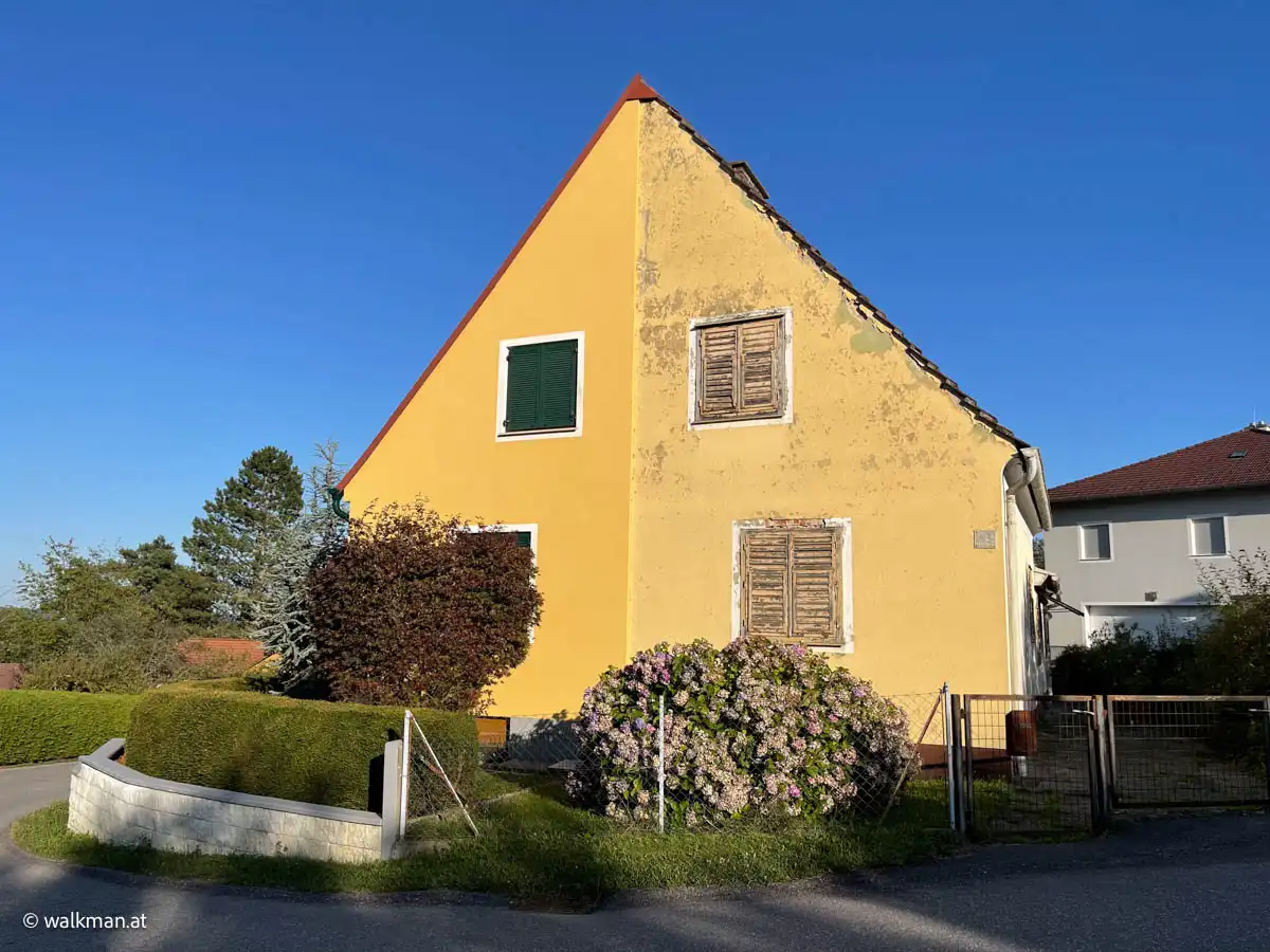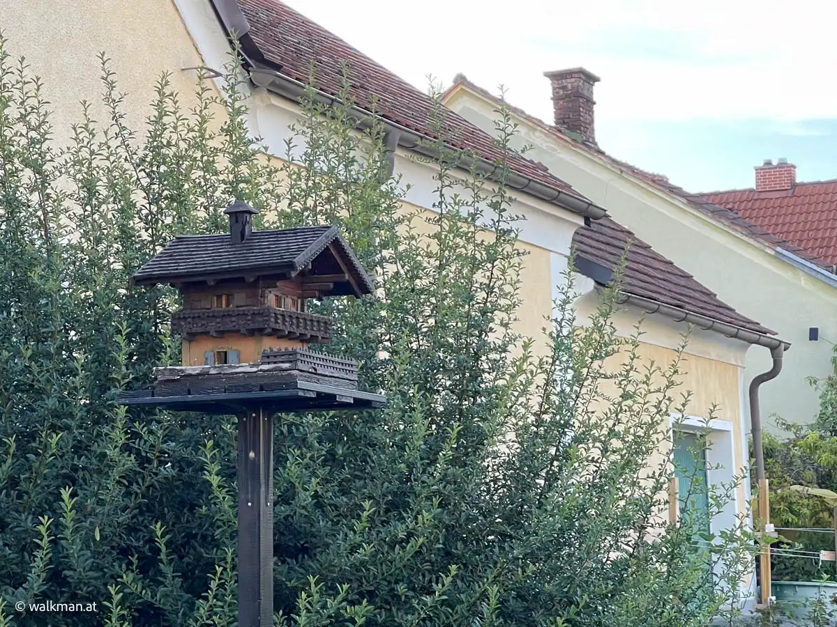 Hm. Ich überlege und kombiniere. Der Privatgrund in allen rechtlichen Ehren, aber wie soll man sonst zur Kapelle gelangen? Lange Rede, kurzer Sinn, wir spazieren den Weg hinein. Im Hof stoßen wir auf zwei Bewohner, die gerade auf ihrer ebenerdigen Terrasse den Feierabend genießen.