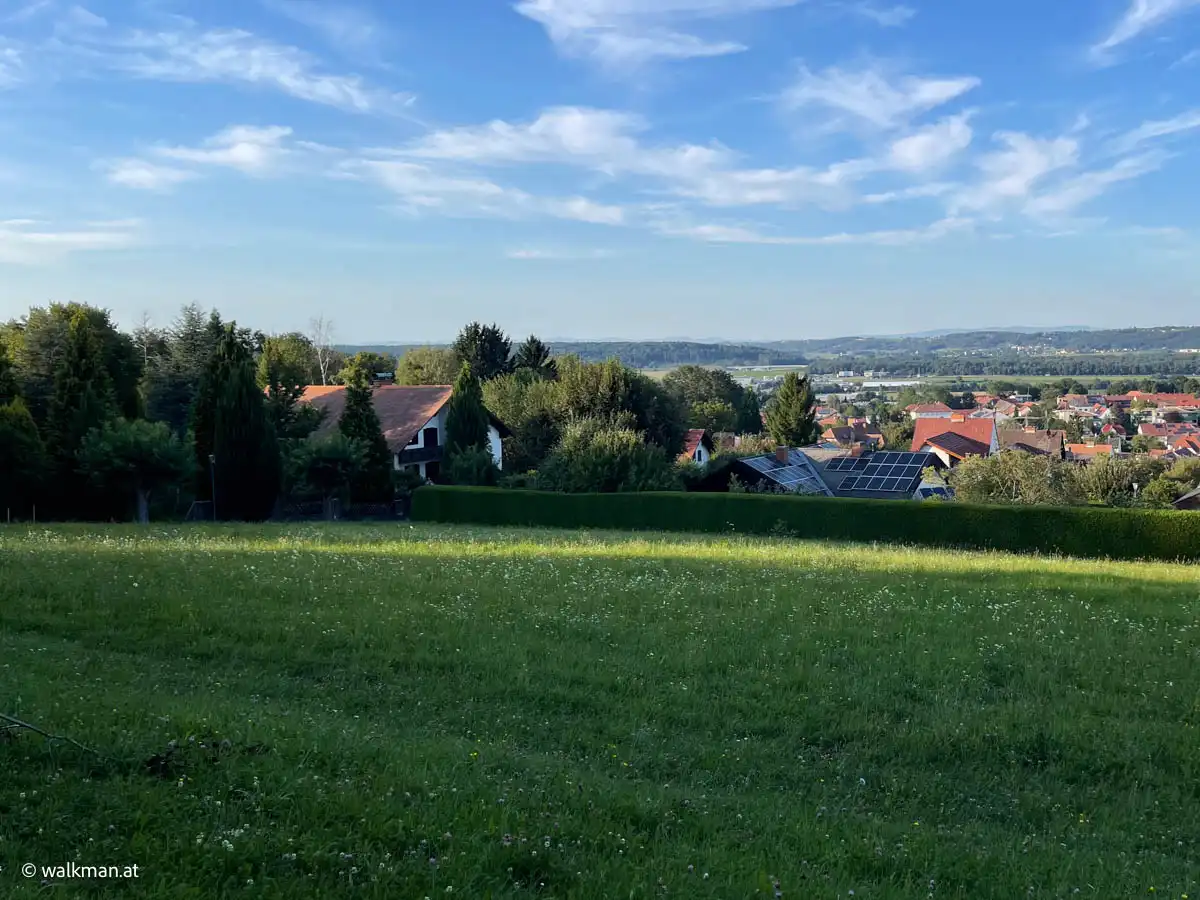 Eine der positiven Nebenwirkungen des Aufstiegs am Dreikreuzberg hinauf ist auch das Panorama, das sich mit jedem Schritt mehr, hinter uns auszubreiten beginnt. Und natürlich muss dieser Umstand in den Verschnaufpausen für etliche Fotos genutzt werden. „Jo mei, i knips halt gern“.