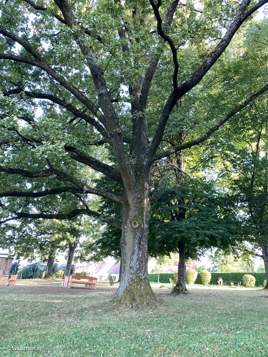Man sieht, das Stadtmarketing hat hier durchaus nette Ideen. Gefällt uns. Teils richtig mächtige Eichen runden das Bild hier stimmig ab und spenden, an sonnigen Tagen hier sicher richtig viel Schatten. Der ja jetzt bei uns bereits ständiger Begleiter ist, ob der Uhrzeit.