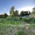 Bald marschieren wir an der Jugendherberge vorbei und an der daneben installierten Teichanlage. Leider hinter Zaun. Also wieder Privatbesitz. Aber schön anzusehen. Eine Art stilles Biotop mit Seerosen und teils Schilfgürtel ringsum. Und dahinter das Heim im „Lost Places“ Charakter. An der Beschriftung fehlen zwei Lettern.