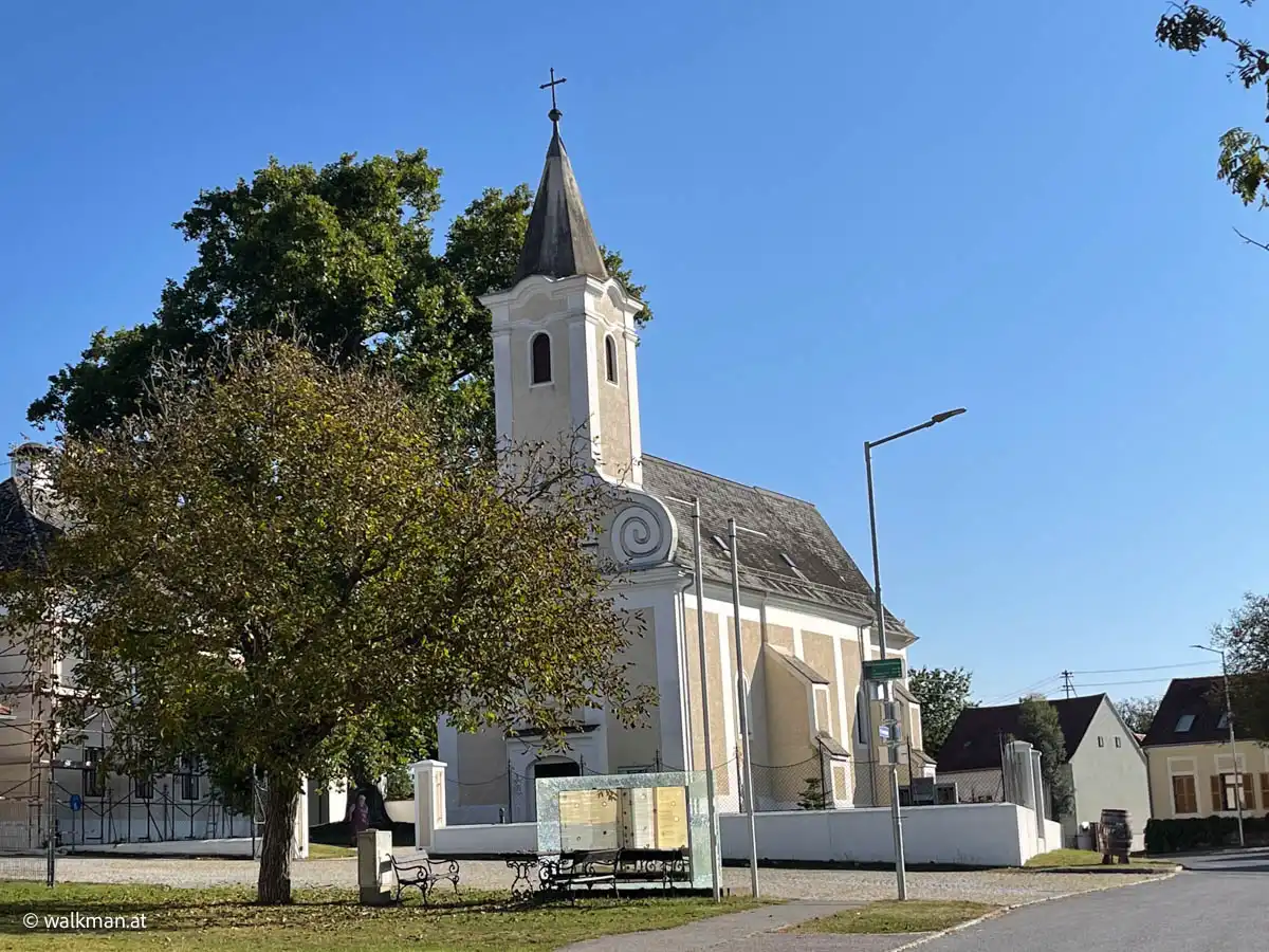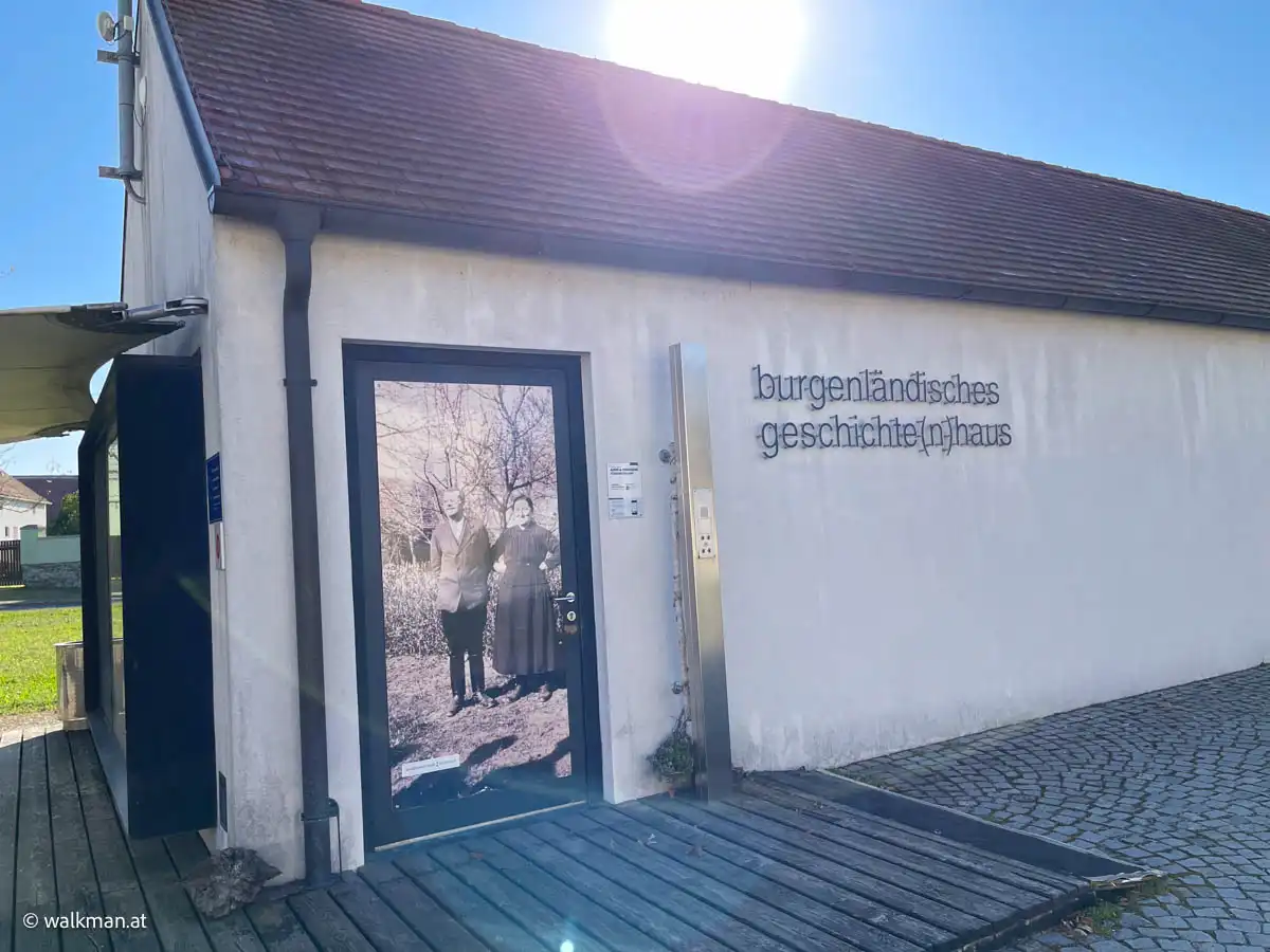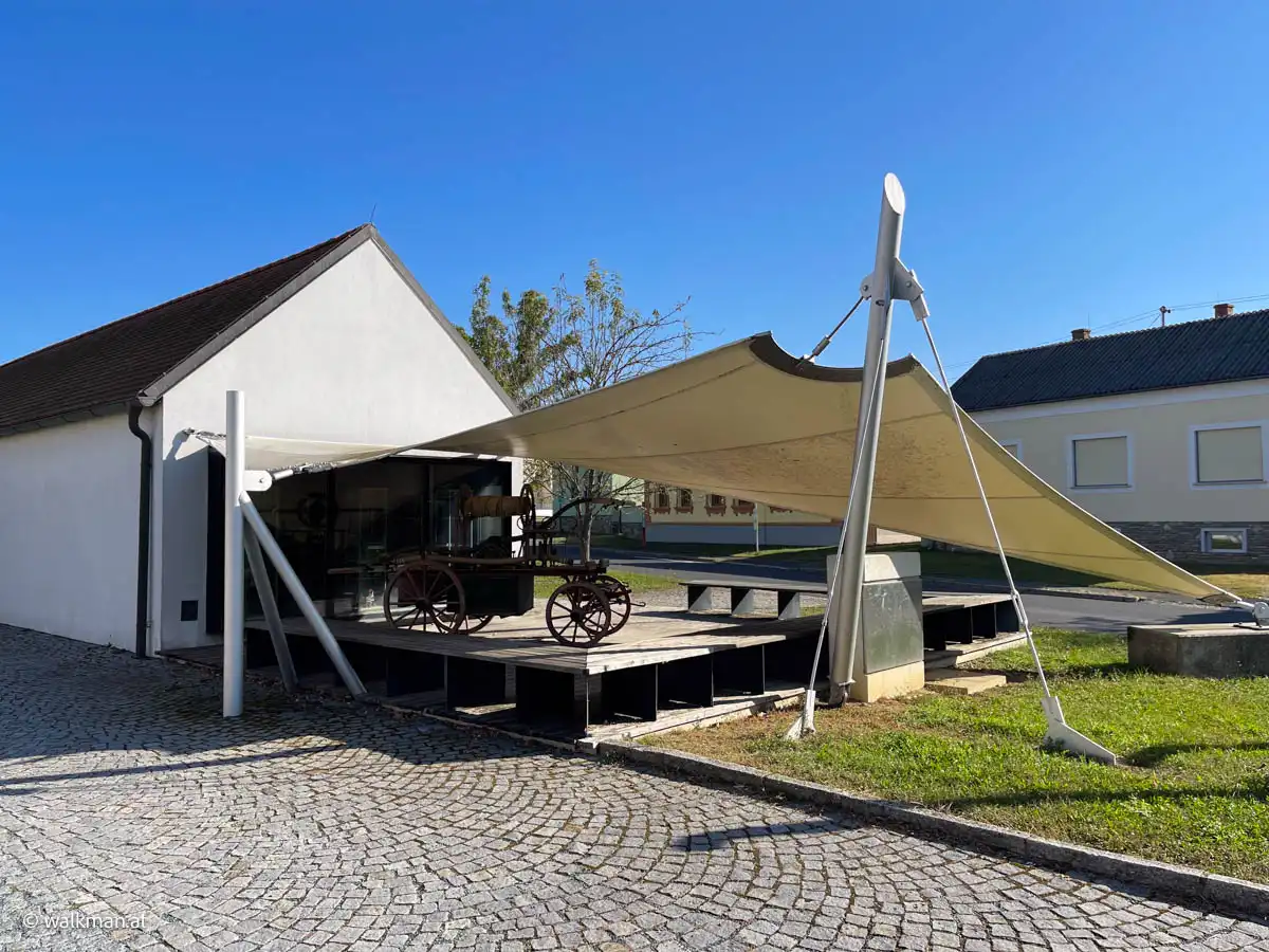 Gesagt, getan. Eine Route war auf dem Webtool, in der, wandermäßig relativ einfachen, Gegend, schnell geplant. Und los ging’s. Am Hauptplatz in Bildein, gleich neben der Kirche und dem Geschichtenhaus, fanden sich, mehr als genügend, Parkmöglichkeiten. Und auch dem Umstand, das Manuela – ob ihres Aufbautrainings – nach wie vor nur etwa 4 bis 5 Kilometer der Tour mitmachte, wurde Rechnung getragen, mit der geplanten Pause, auf etwa Routenmitte, im Café Crustulum in Eberau.