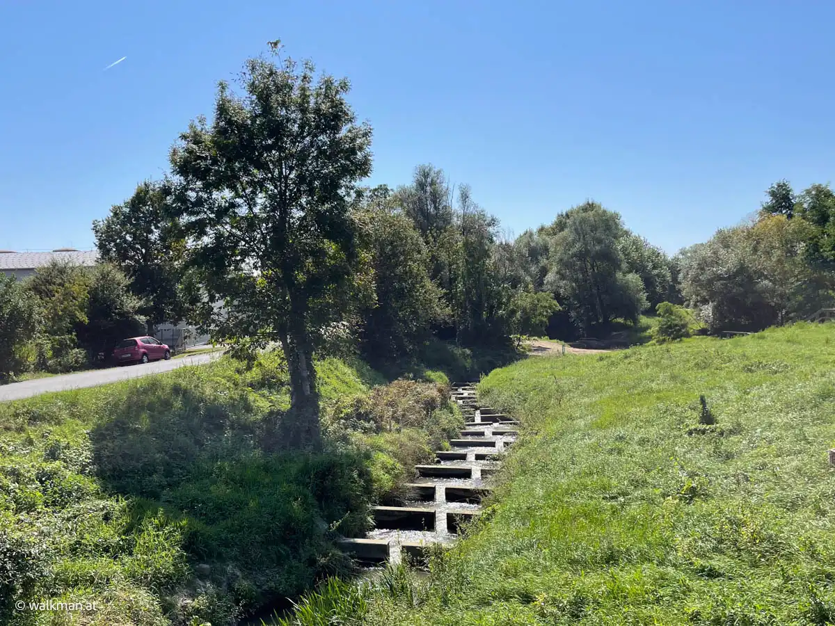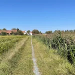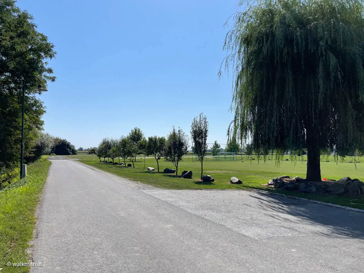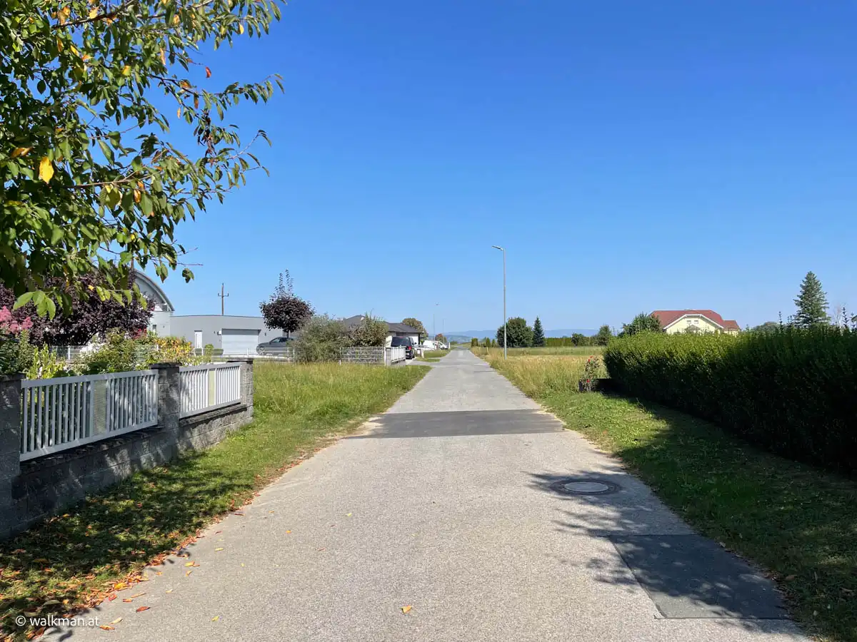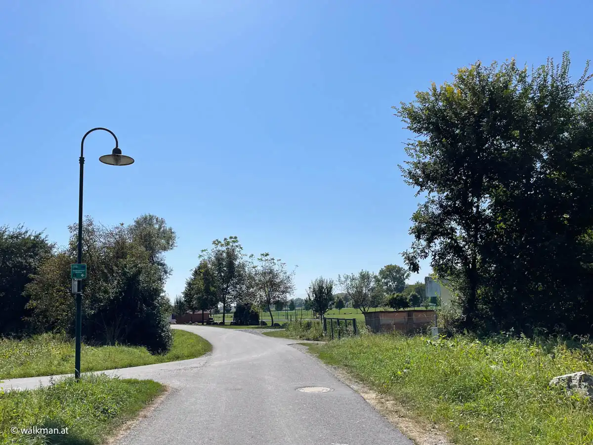 Das bleibt mir heute aber mehr oder weniger erspart. Das Nachdenken. Über die Brücke der Pinka drüber, gleich rechts rein, marschiere ich nun durch einen Teil von Bildein, den ich noch nicht kannte. Eine schöne Gasse am Rande des Ortes. Beim Sportplatz vorbei. Und hier wieder links.
