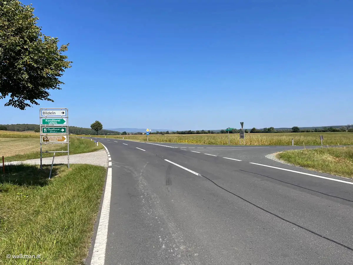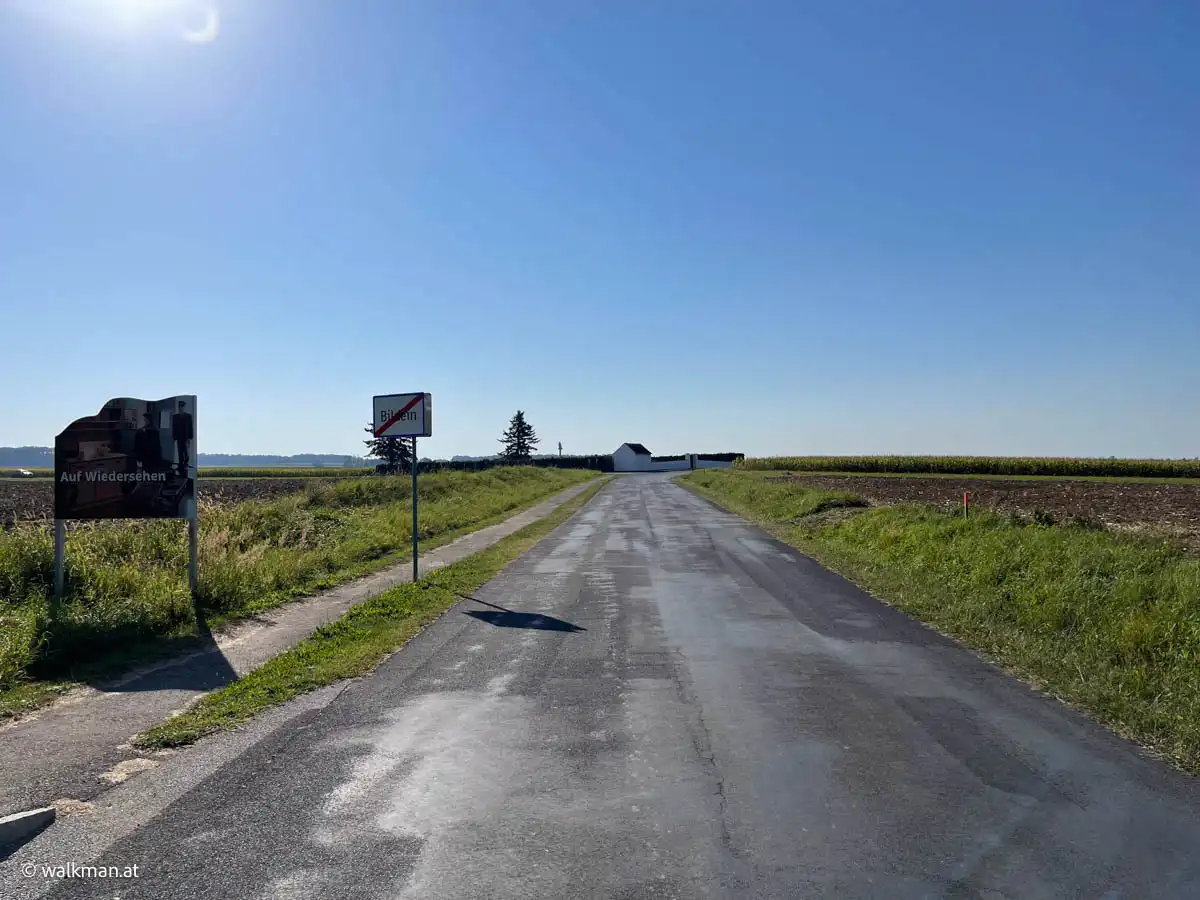 Das sind Abschnitte die, so sagt man, einem „den letzten Zahn“ ziehen. Und so hab ich mich auch gefühlt. Und damit angefangen meine Schritte zu zählen. Als Ablenkung. Das funktioniert meistens. Aber nicht immer. Doch für heute hat es gereicht. Für die Gerade. Bald bin ich an der Ortstafel von Bildein vorbei.