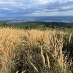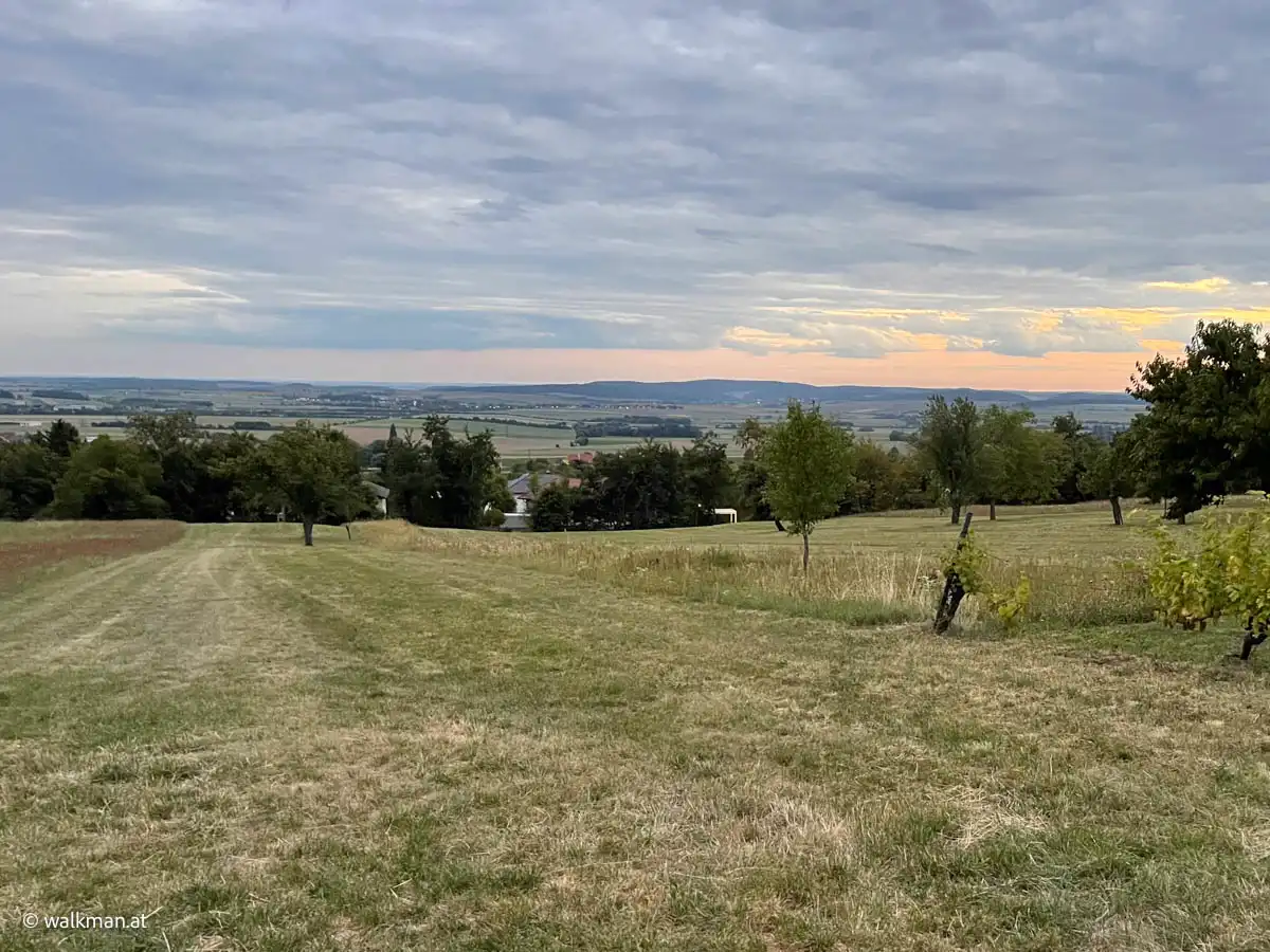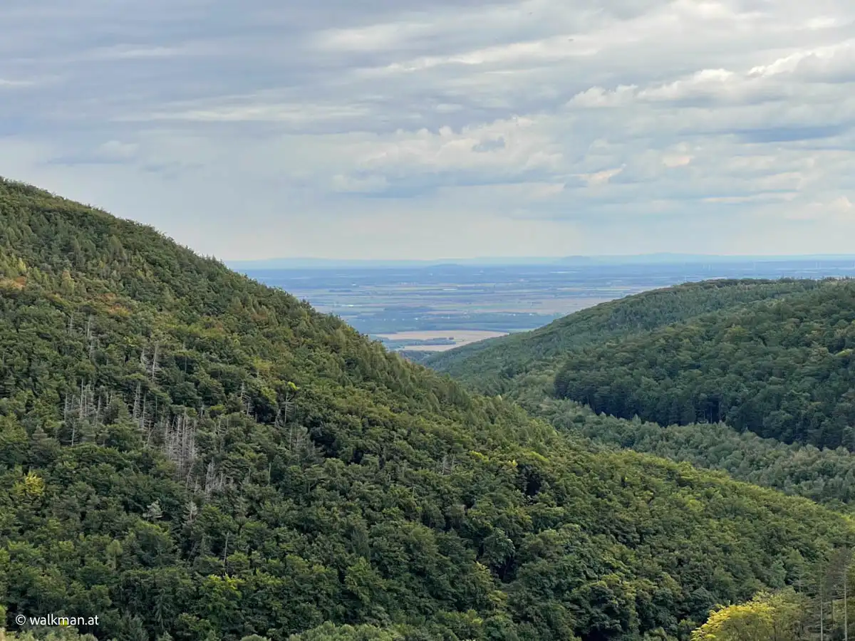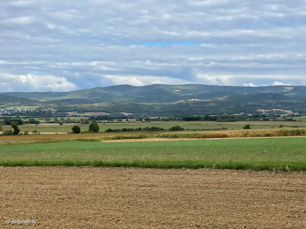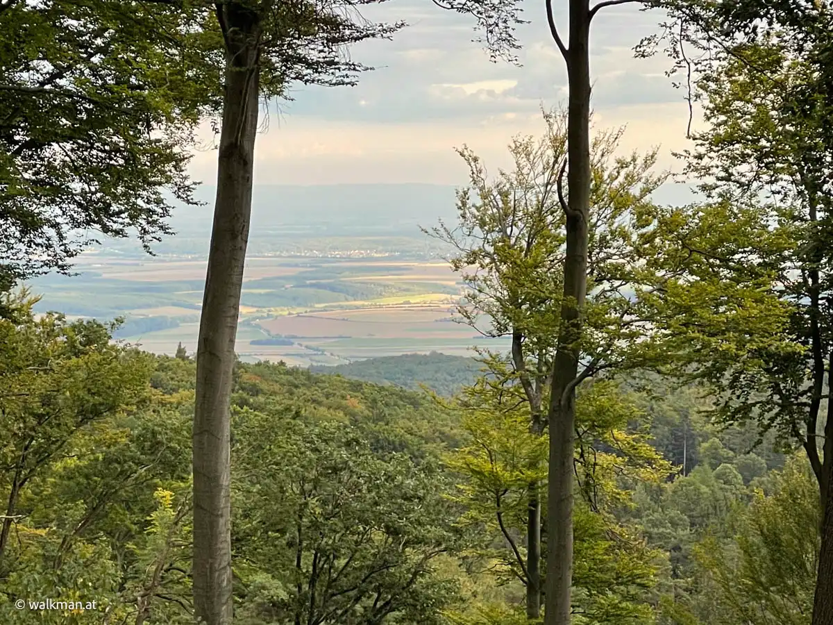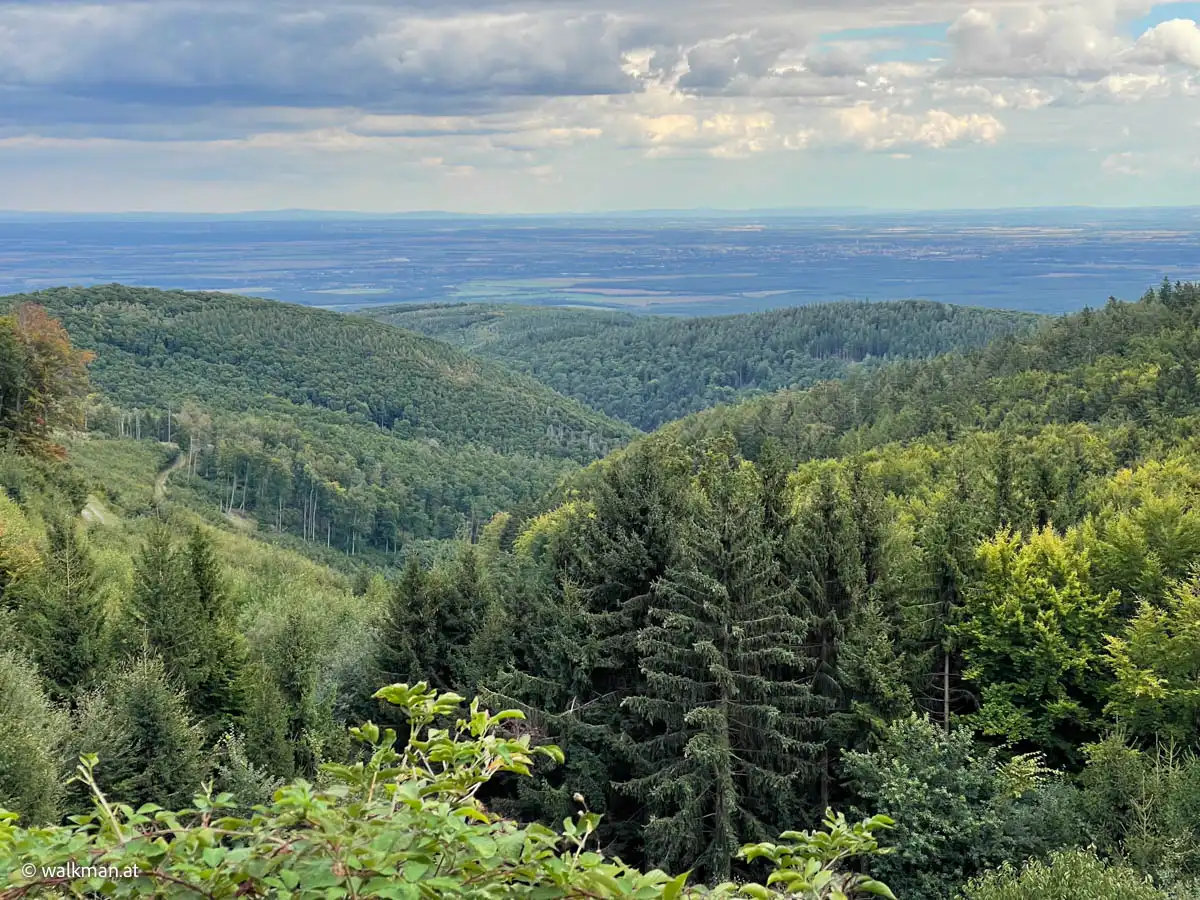 Das war keine falsche Entscheidung, wie man an obigem Bild erkennen kann. Hier ist ein richtig toller Fotopunkt. Und ein traumhaftes Panorama. Hinter vorgelagerten geschwungenen Hügeln sieht man weit bis nach Ungarn rein. Herrlich.