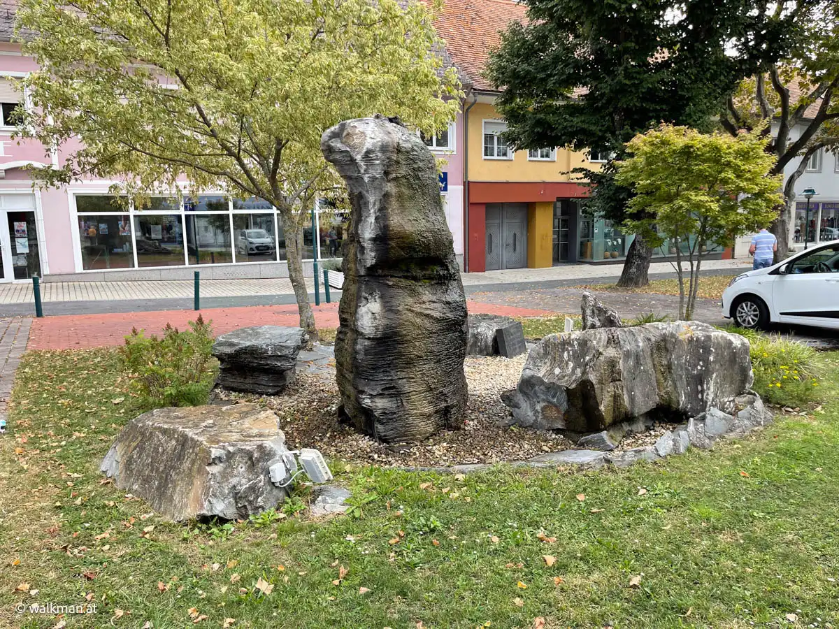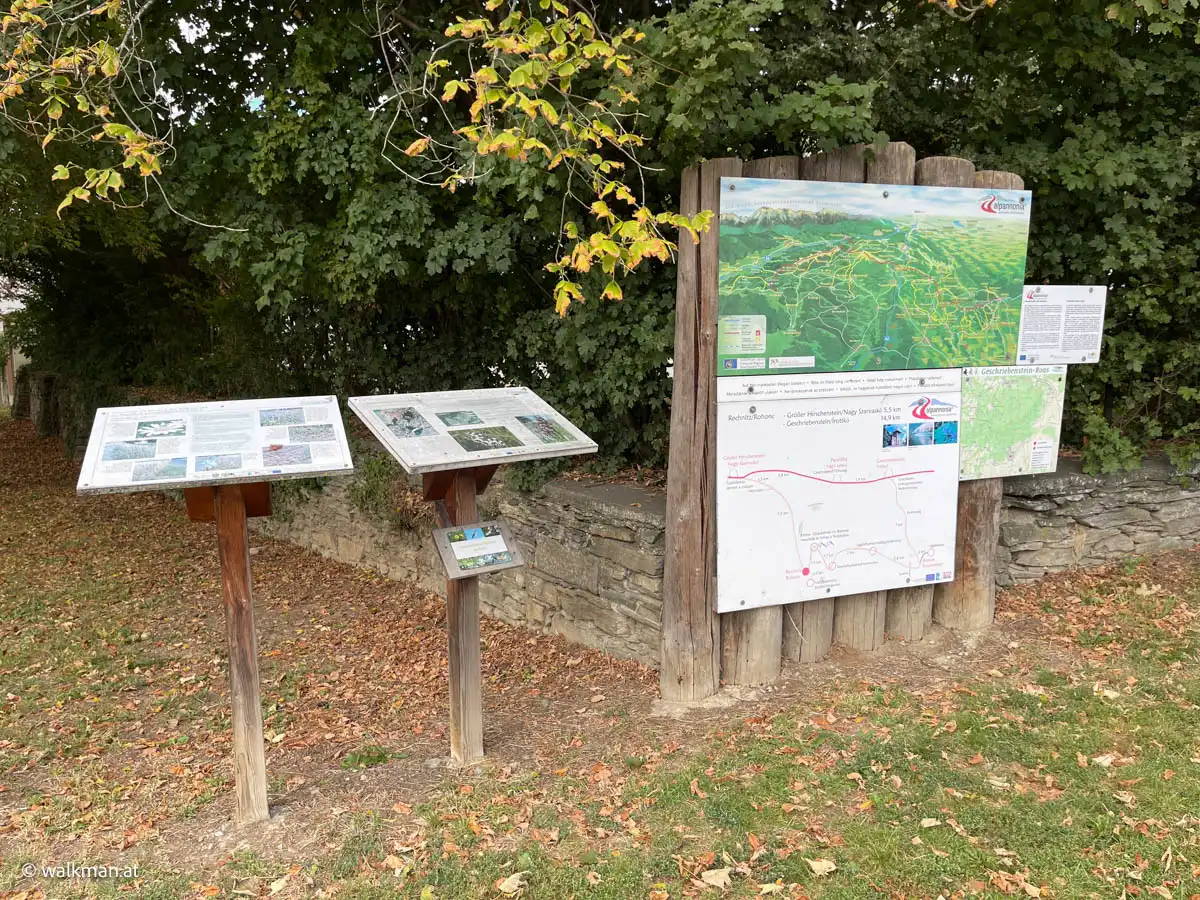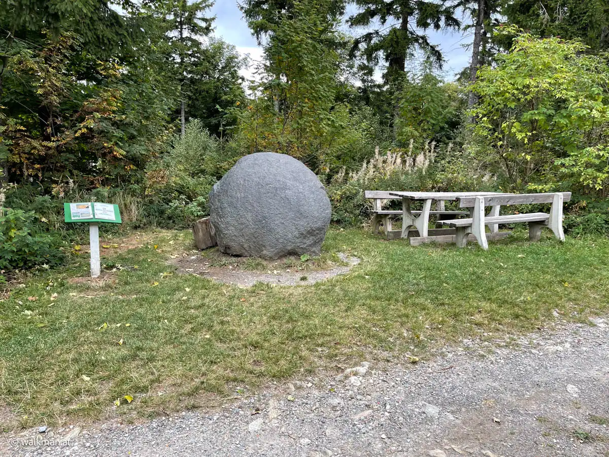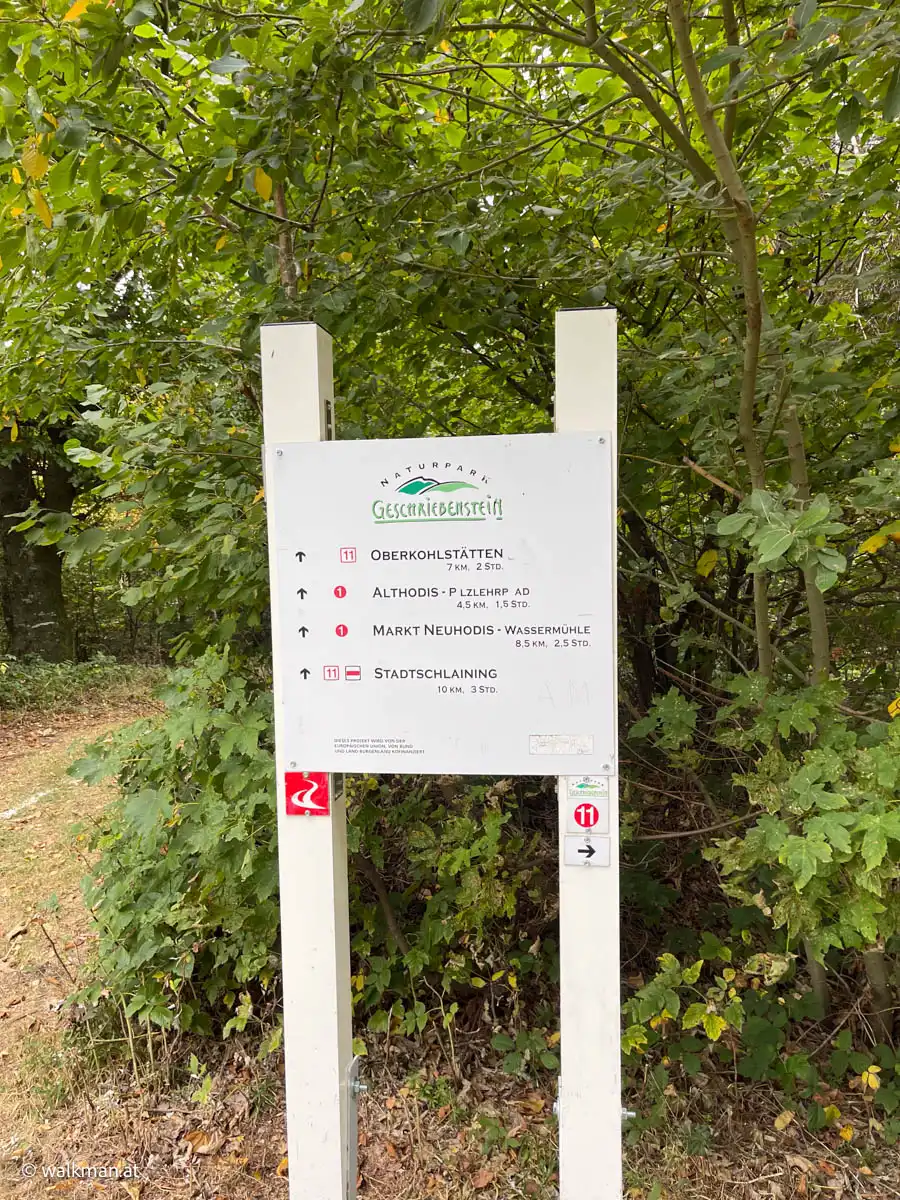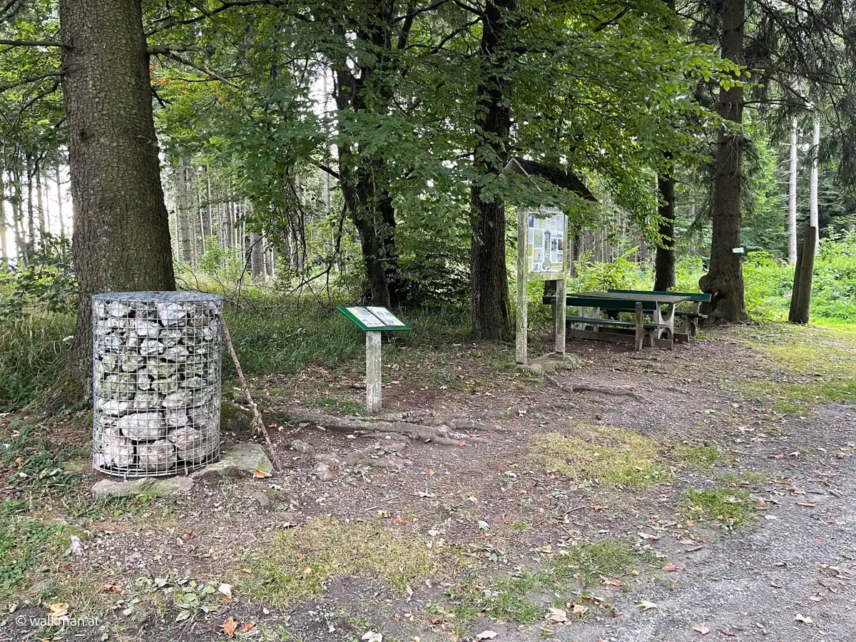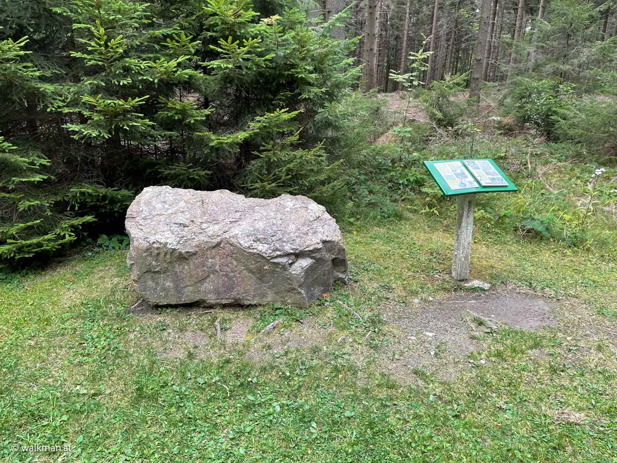Immer wieder kommt man an Bänken und an beschilderten, künstlich angelegten Steinformationen vorbei. Der Steinlehrpfad – eine nette Idee. Und auch Bildung, für jenen der’s lesen mag. Ich entscheid mich gegen das Rasten und schritt meine Tour weiter. Es war mittlerweile schon 16 Uhr und das Wetter schien, wenn man die dunklen aufziehenden Wolken am Himmel betrachtete, nicht gerade stabil zu sein.