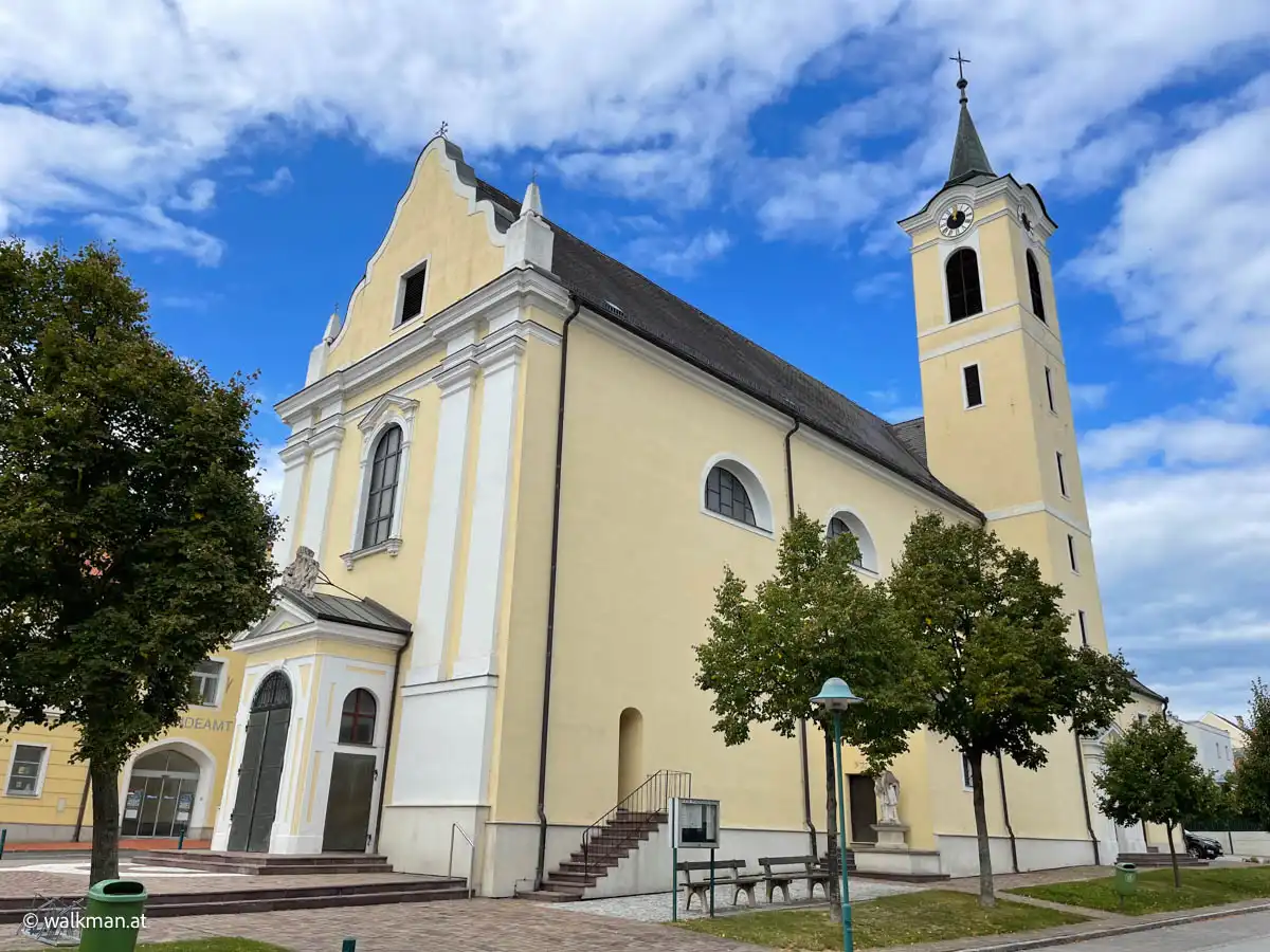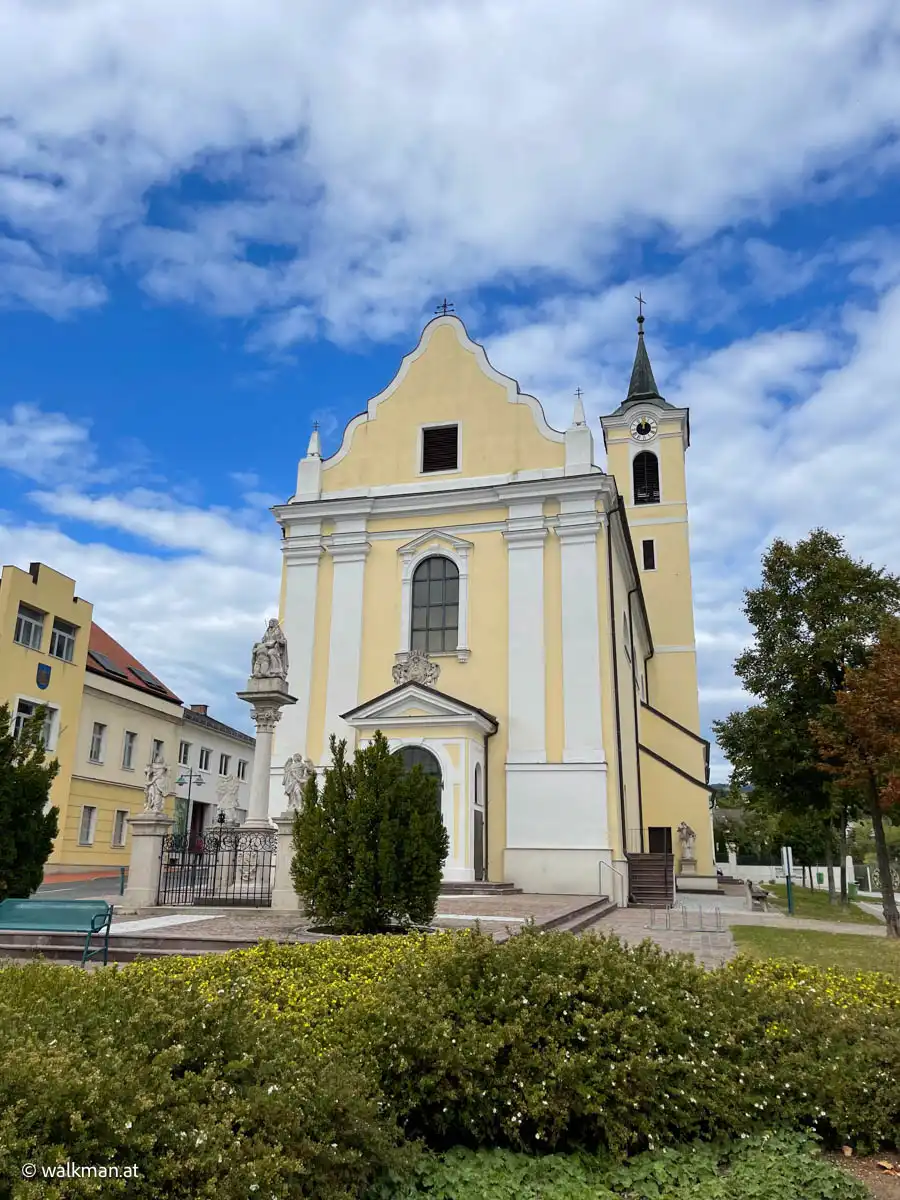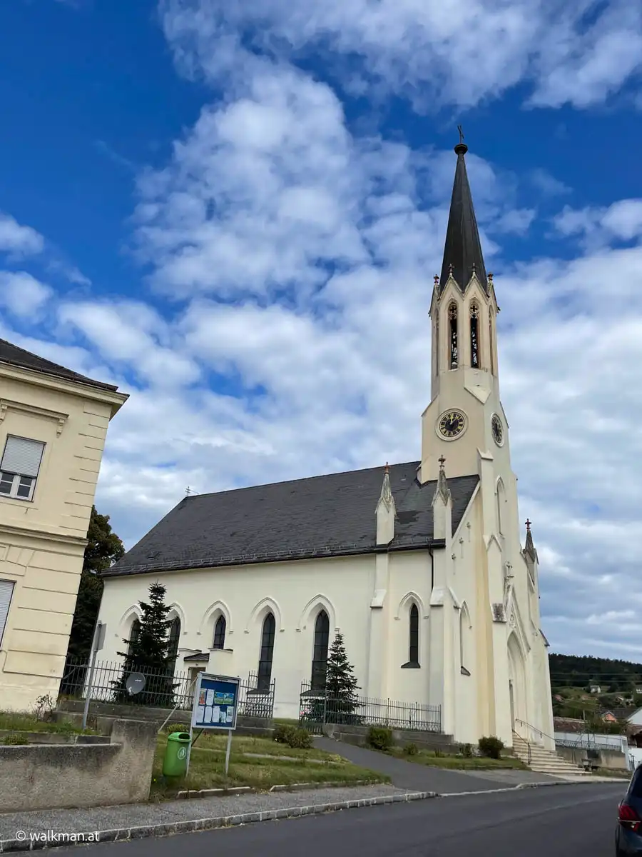 Die Strecke führt zunächst durch den Ort Rechnitz. Vorbei am (weltweit einzigartigen?) Bachblüten-Kraftpark über den Hauptplatz und den beiden schönen Kirchen. Beide wurden von mir natürlich aus allen Winkeln für die Nachwelt etliche Male fotografiert. Weiter gehts, die Straße durchs Faludital, nach hinten, Richtung Badesee.