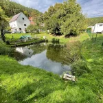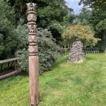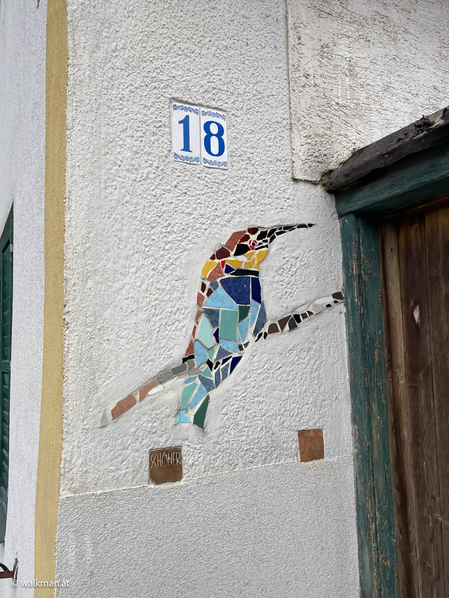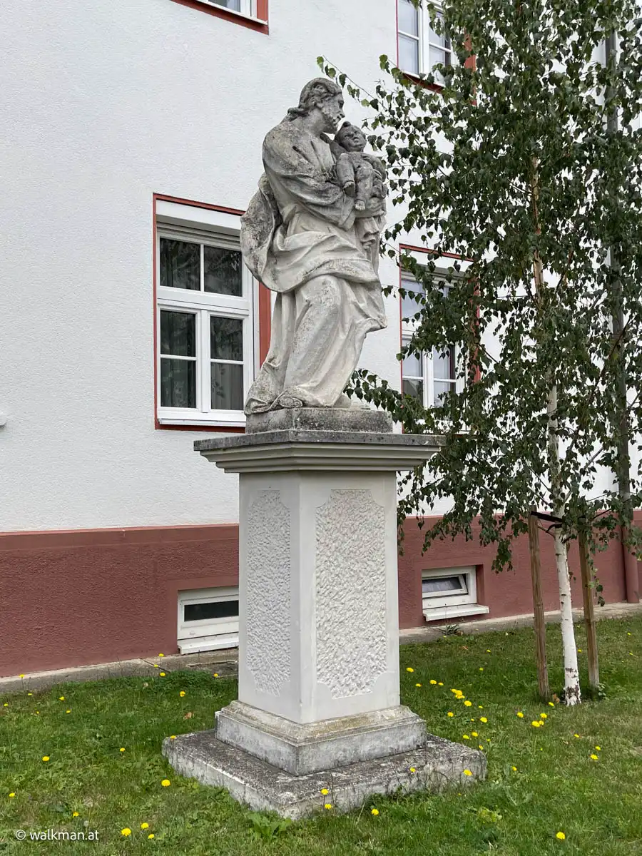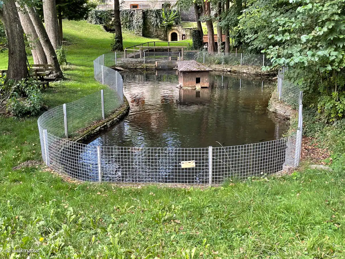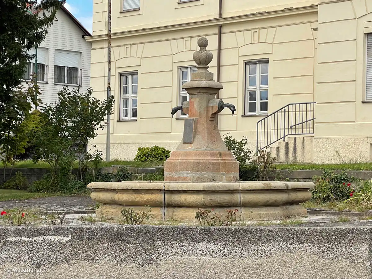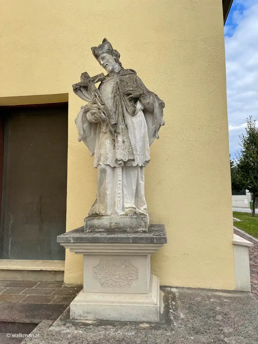 Hier kommt man auch beim Wandererkreuz und der Vinothek Reichermühle (mit Museum) vorbei. Fast übersehen hätte ich hier auch ein schönes Fleckerl abseits der Straße. Ein Fischteich mit schönen Holzschnitzereien beim Eingang. Links und rechts am Eingang scheinen die zwei hölzernen Adler das Areal zu bewachen.