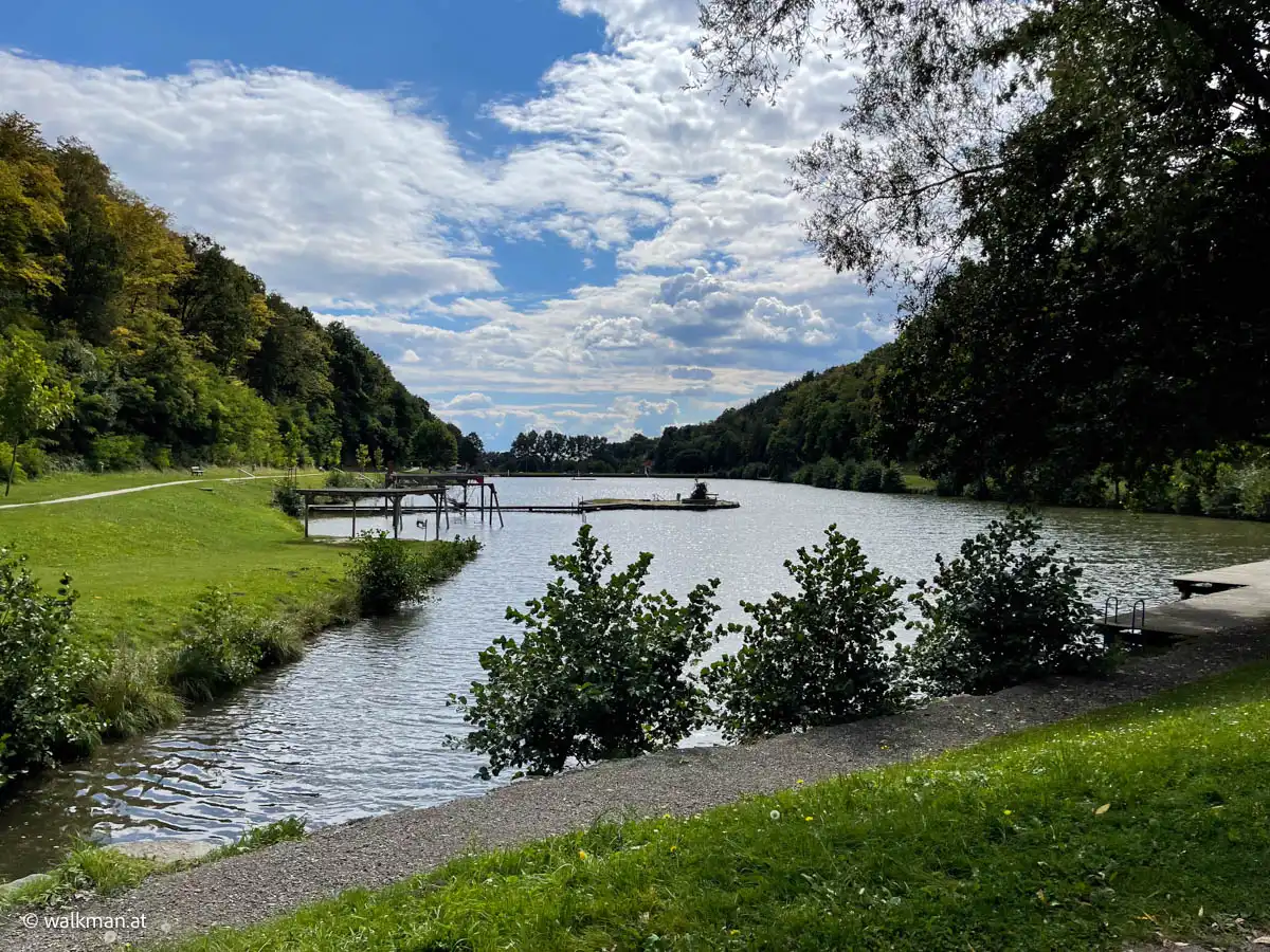 Am Stau- oder Badesee, wie immer man ihn nennen mag – beides ist korrekt – angekommen, gehts diesen zunächst am Ufer entlang. Der See an sich hat auch etwas Besonderes. Malerisch fügt er sich in die umliegende Landschaft ein, als sei er schon immer hier gewesen. Kaum zu glauben, dass dieser künstlich aufgestaut wird.