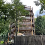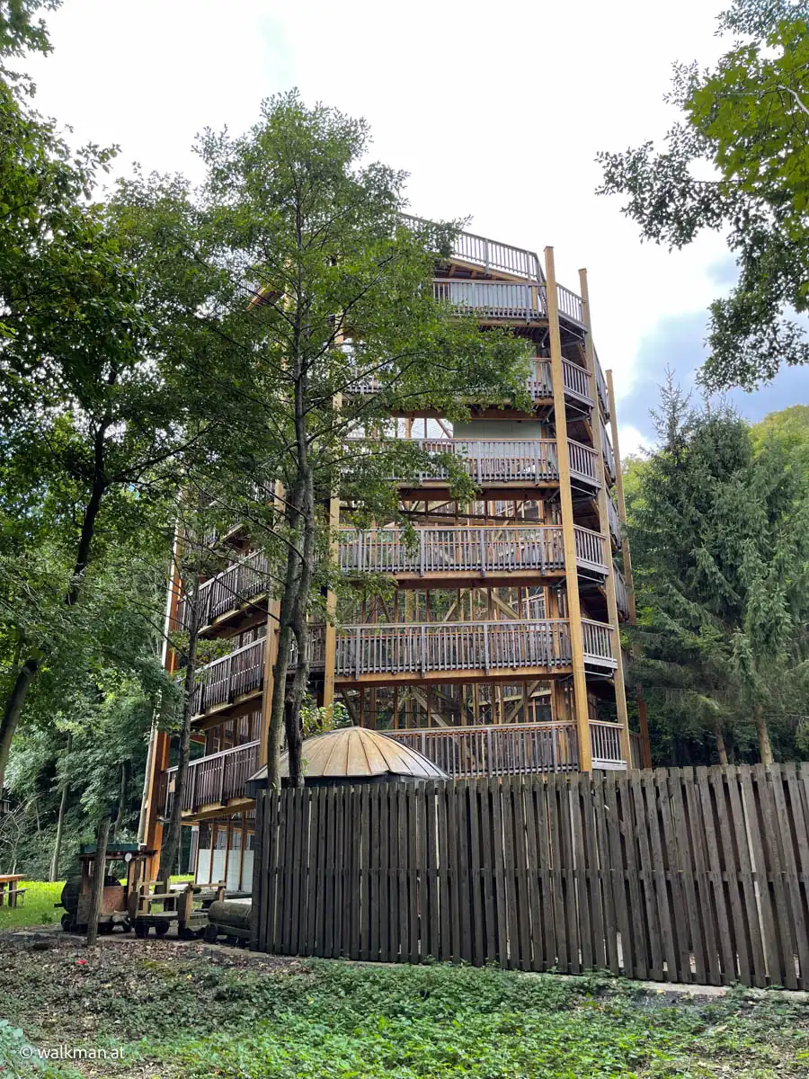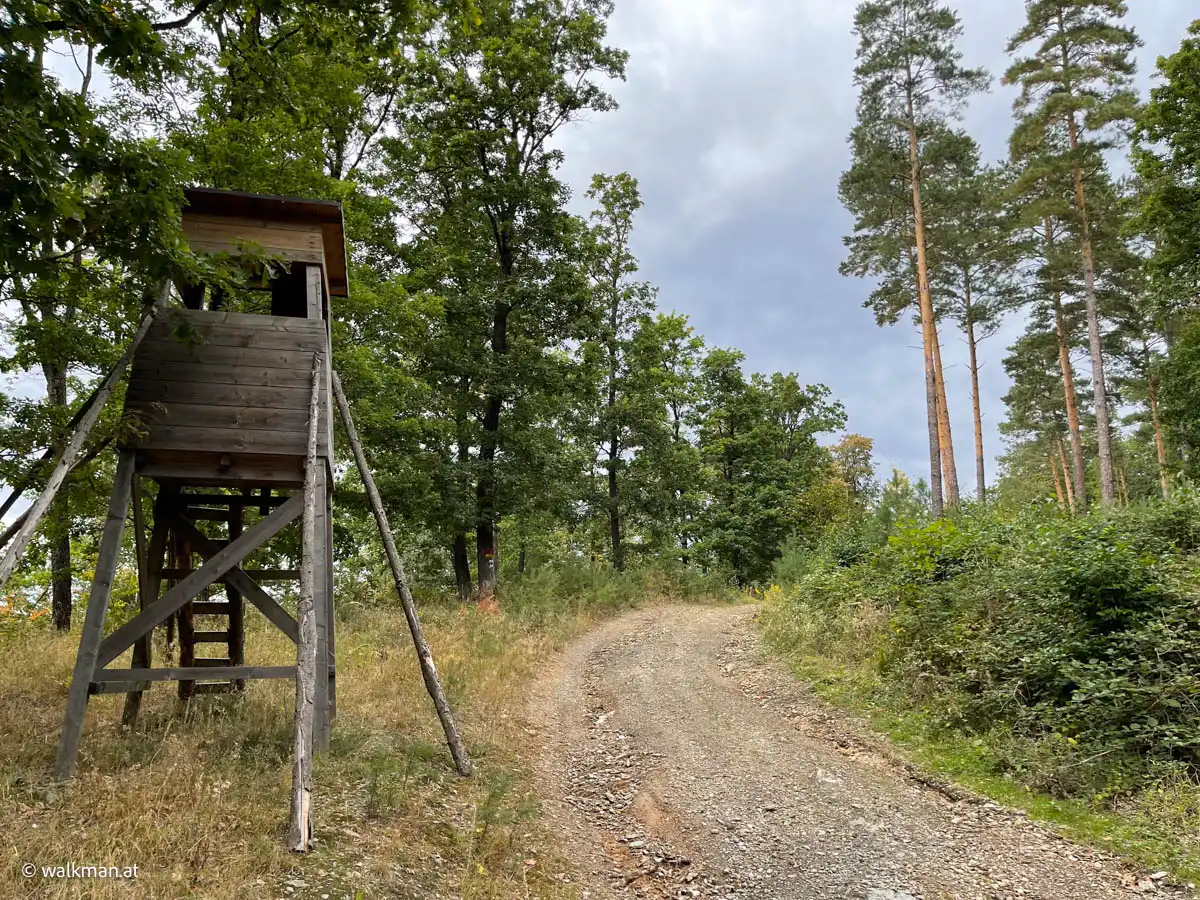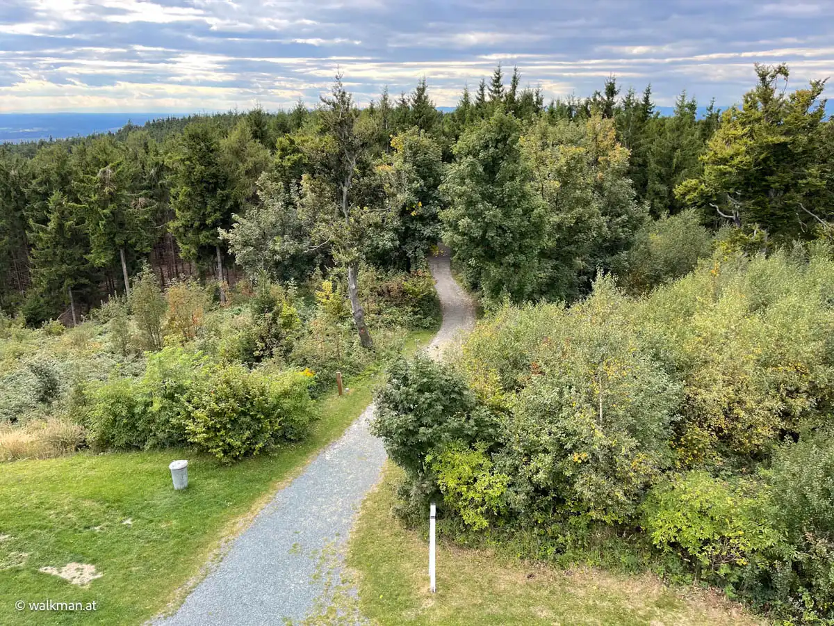 Aber ich hab heute etwas Anderes vor. Also kein Imbiss, kein Planschen. Rauf will ich – am Gipfel. Gleich hinter dem See befindet sich, weiter am Weg, das Vogelparadies. Der imposante Holzturm ist auch einen eigenen Besuch wert, aber das hatte ich ja bereits bei einer anderen Tour, zum „Öden Schloss“, gemacht.