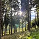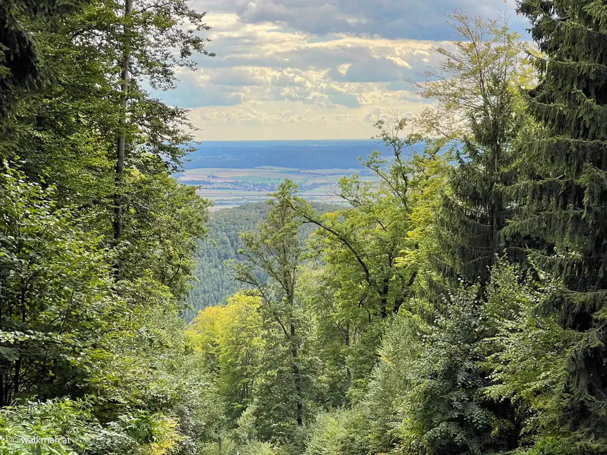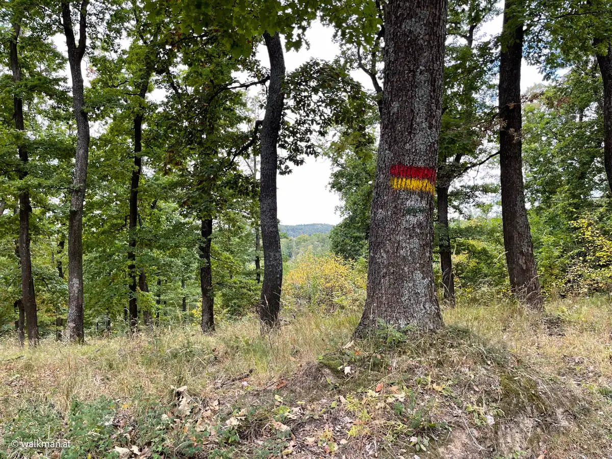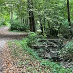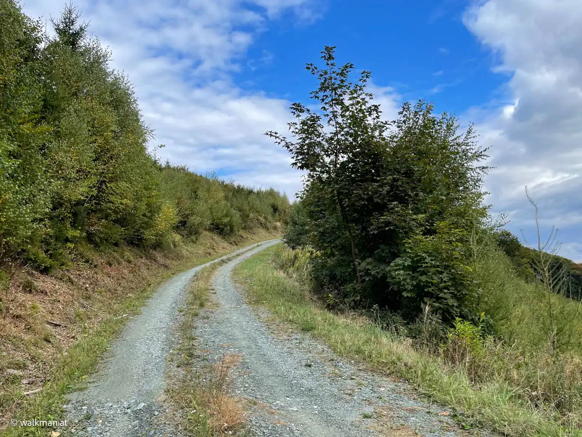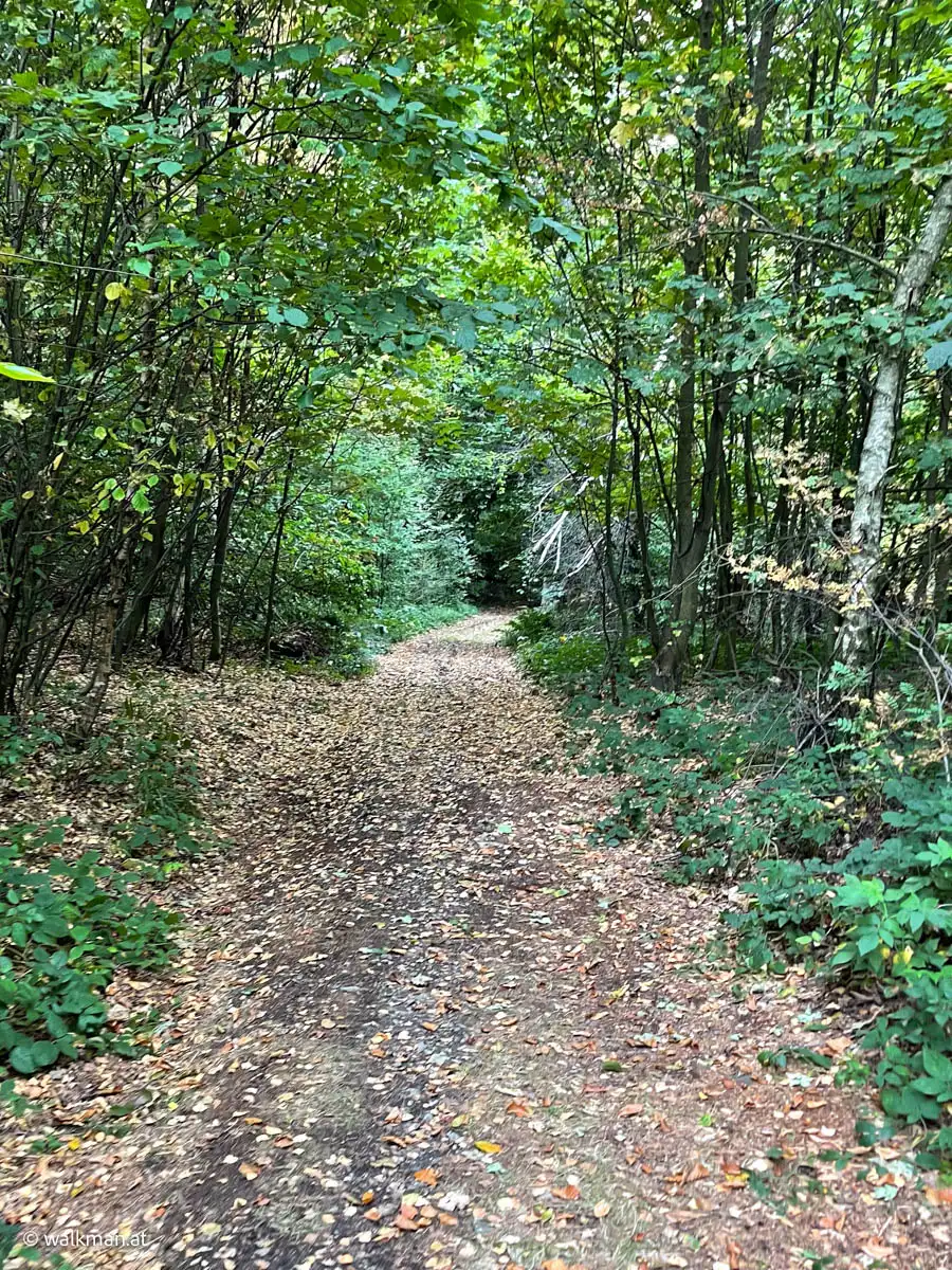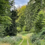 Ich bin mich einmal vergangen und dann, zwei Kilometer später, wieder links abgebogen, um auf die Route zurückzukommen. Meine Route führte bei diesem Abschnitt eben halbhoch am Kamm durch den Wald, anstatt – wie vorgesehen – am Bach entlang. Sei‘s drum, angenehm zu gehen, war es jedenfalls.
