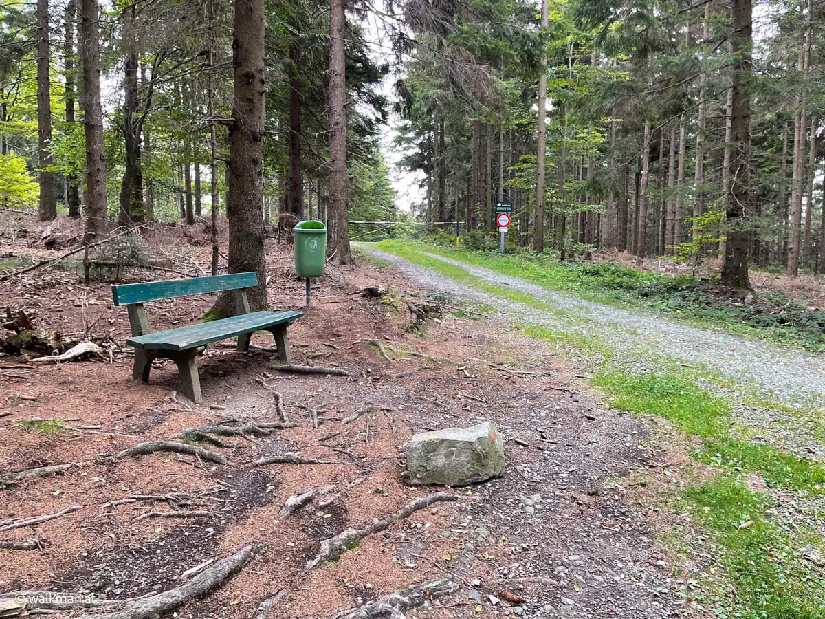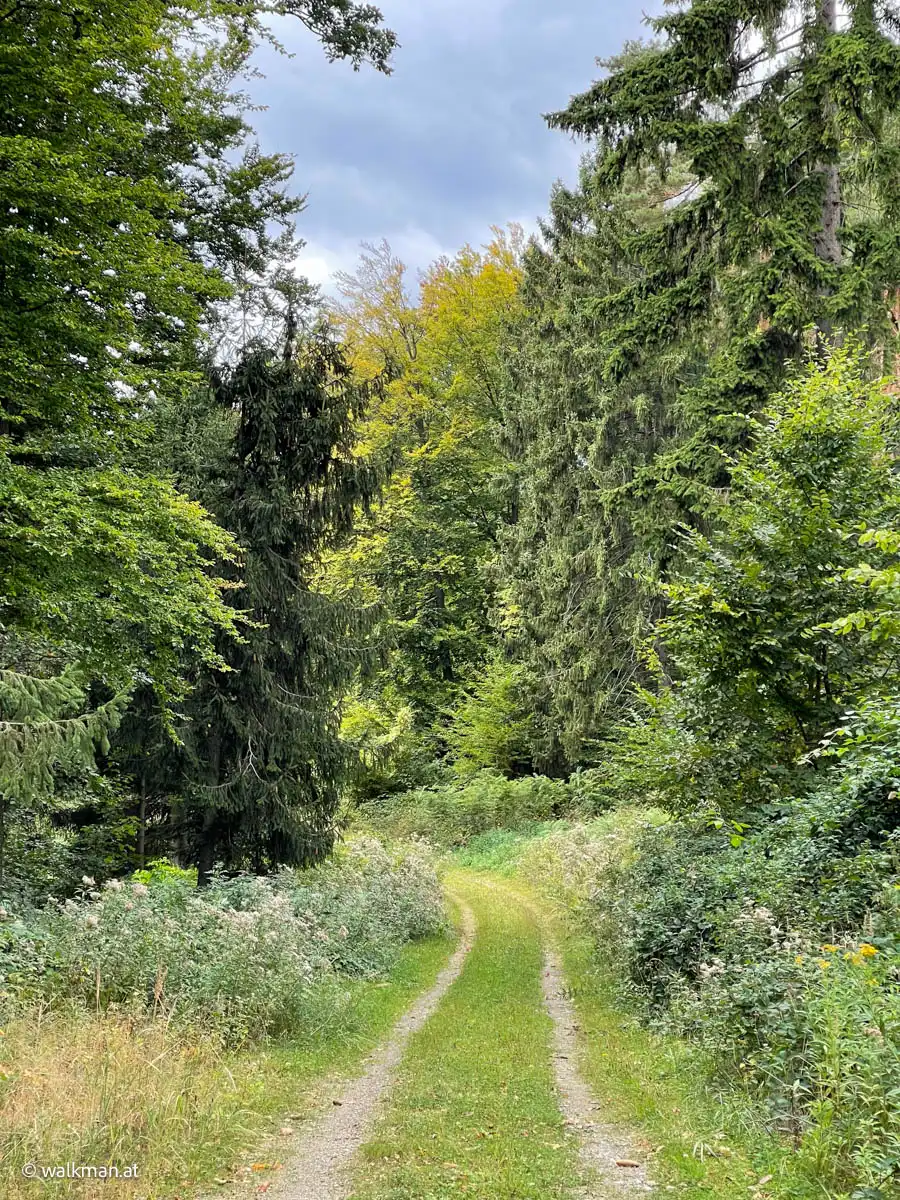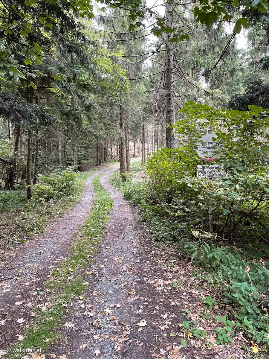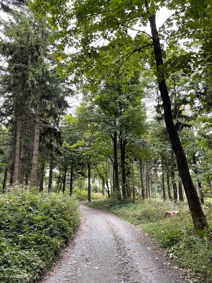 Die Route führt nun auf angenehmen, weitgehend ebenen Waldwegen durch das Geschriebensteinmassiv. Mir sind hier zwei besonders schnelle Mountainbiker und eine sichtlich gut gelaunte Familie begegnet, ansonsten war ich ganz alleine mit mir und den unendlich vielen Bäumen.