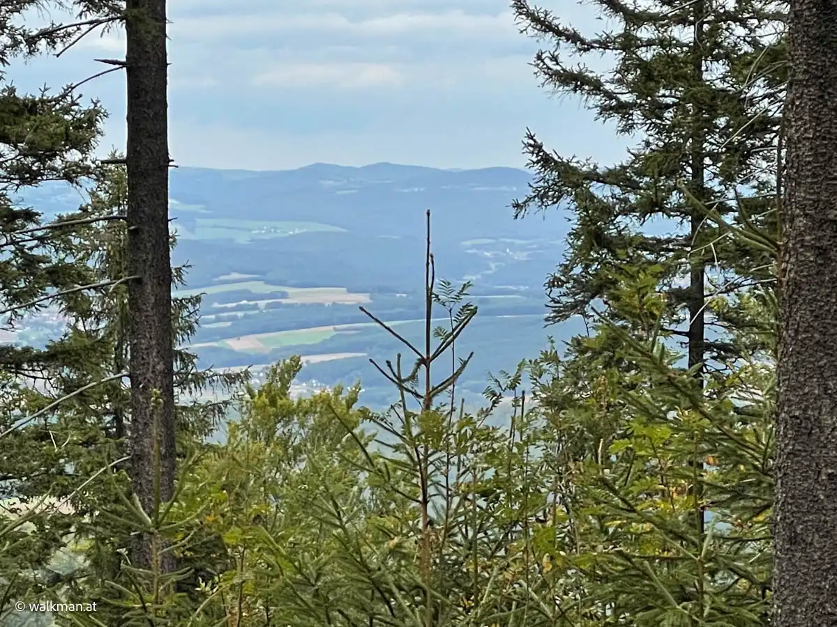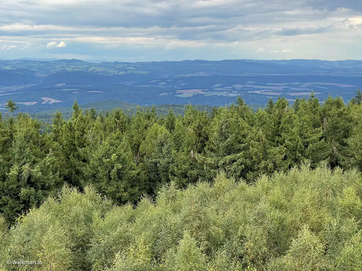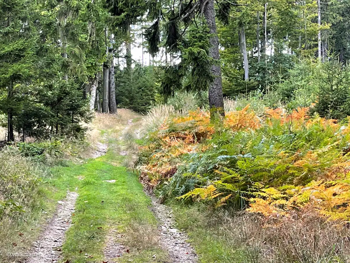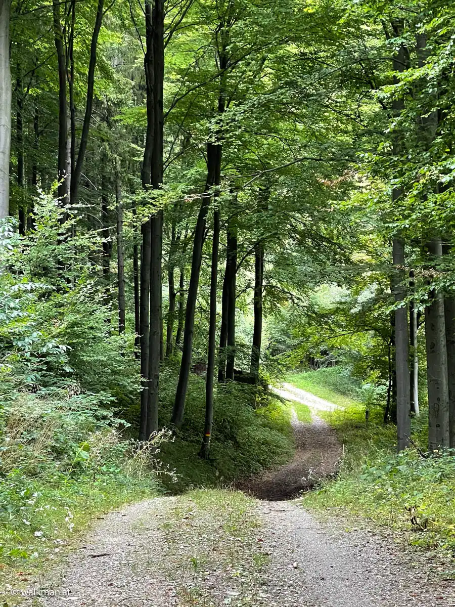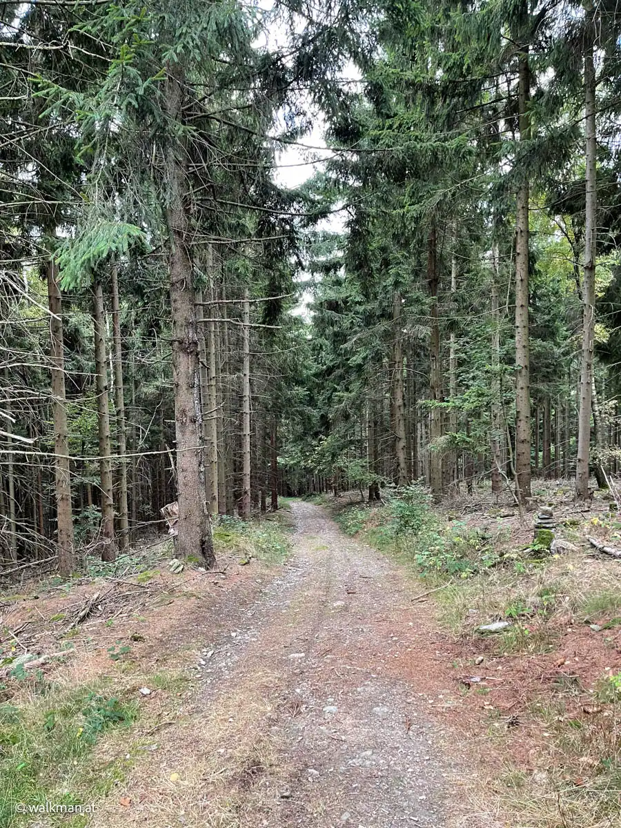 Die Route führt nun auf angenehmen, weitgehend ebenen Waldwegen durch das Geschriebensteinmassiv. Mir sind hier zwei besonders schnelle Mountainbiker und eine sichtlich gut gelaunte Familie begegnet, ansonsten war ich ganz alleine mit mir und den unendlich vielen Bäumen.