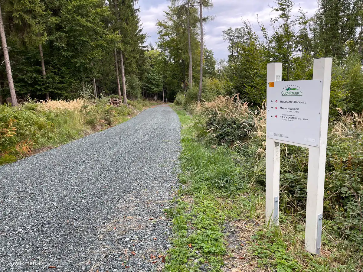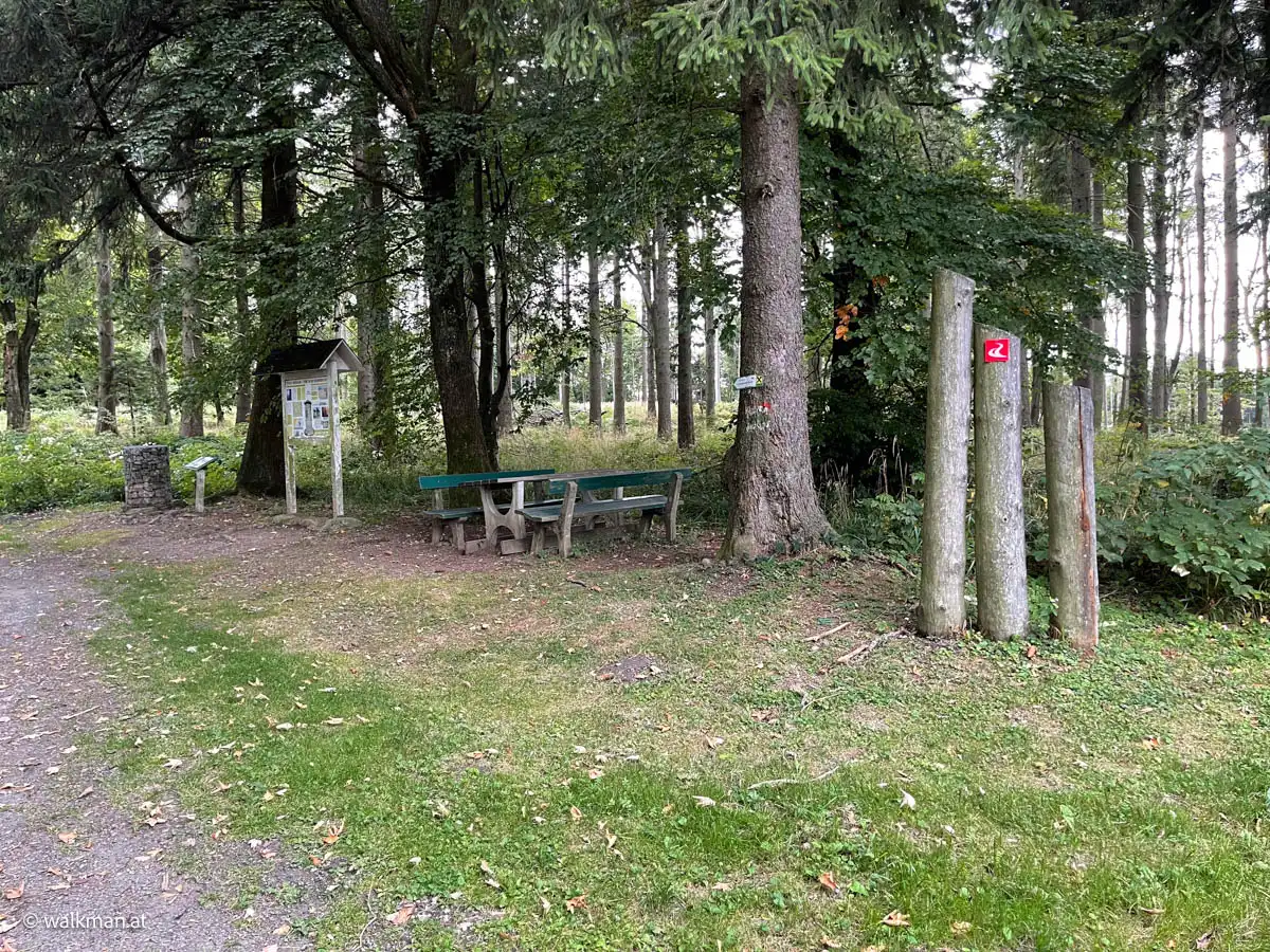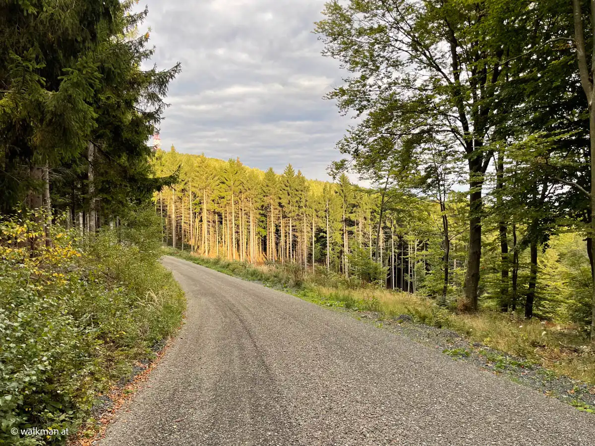 Und dennoch war das ja heute nur ein Etappenziel. Auch der zweite Gipfel am Geschriebensteinmassiv wollte noch besucht werden. Der Hirschenstein. Also ging es nach diesem ersten Erfolgserlebnis wieder weiter. Die Wegstrecke zum, bereits erwähnten, Parkplatz an der Bundesstraße bei der Passhöhe ist angenehm und relativ eben.