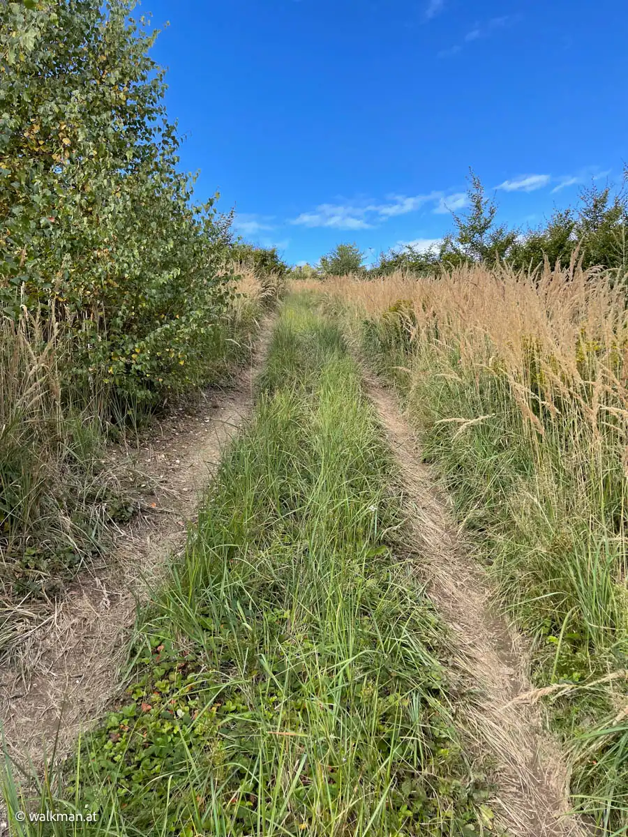 Hier wollte ich aber wieder nicht die vorgegebene Route gehen. Das würde heißen die gleiche Strecke bis zum Kreisverkehr retour. Und ich mag es nicht Strecken zweimal zu gehen. Ich mag schöne abgeschlossene Runden auf meinem Streckenbild sehen. Also ging ich eine Schleife. Zunächst den Weg Richtung Althodis, um ein wenig später wieder links abzubiegen. Und bald war ich wieder auf der vorgegebenen Route.