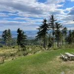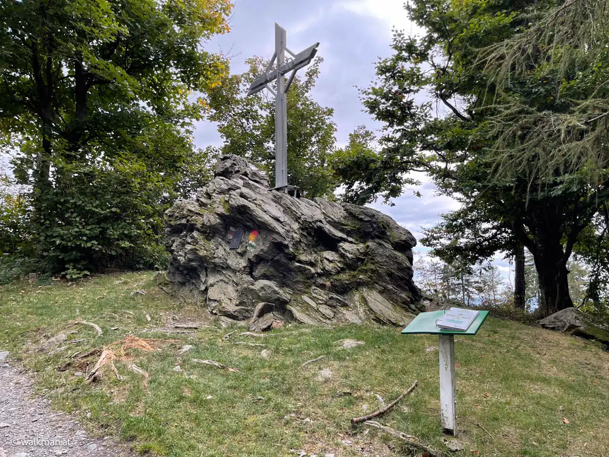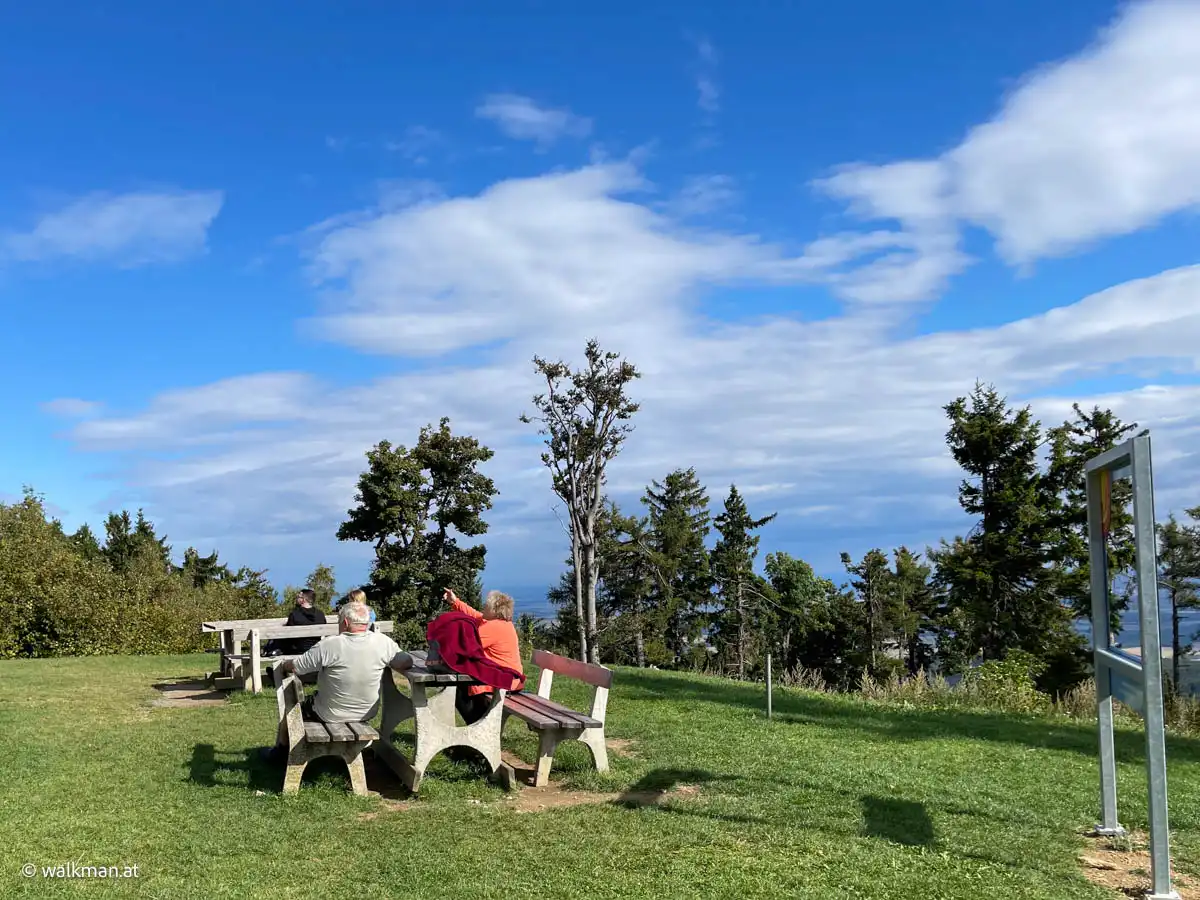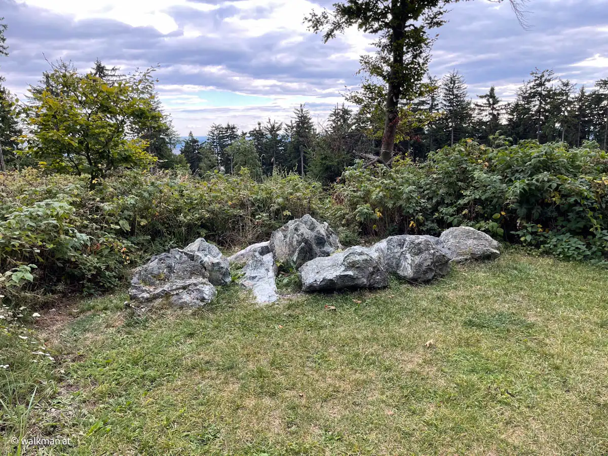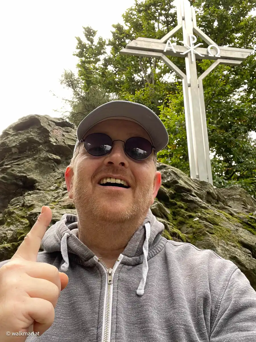 So ähnlich fühlte ich mich beim Betreten der Lichtung am Gipfel. Ich hatte es geschafft. Ich war oben! Aber nicht nur ich. An die 20 Touristen tummelte sich an diesem schönen Septembertag hier oben. Und einige sahen verdutzt in meine Richtung. „Der Mann der aus dem Walde kam ….“