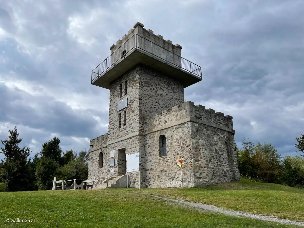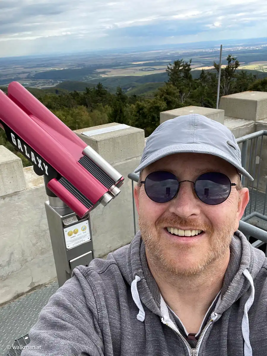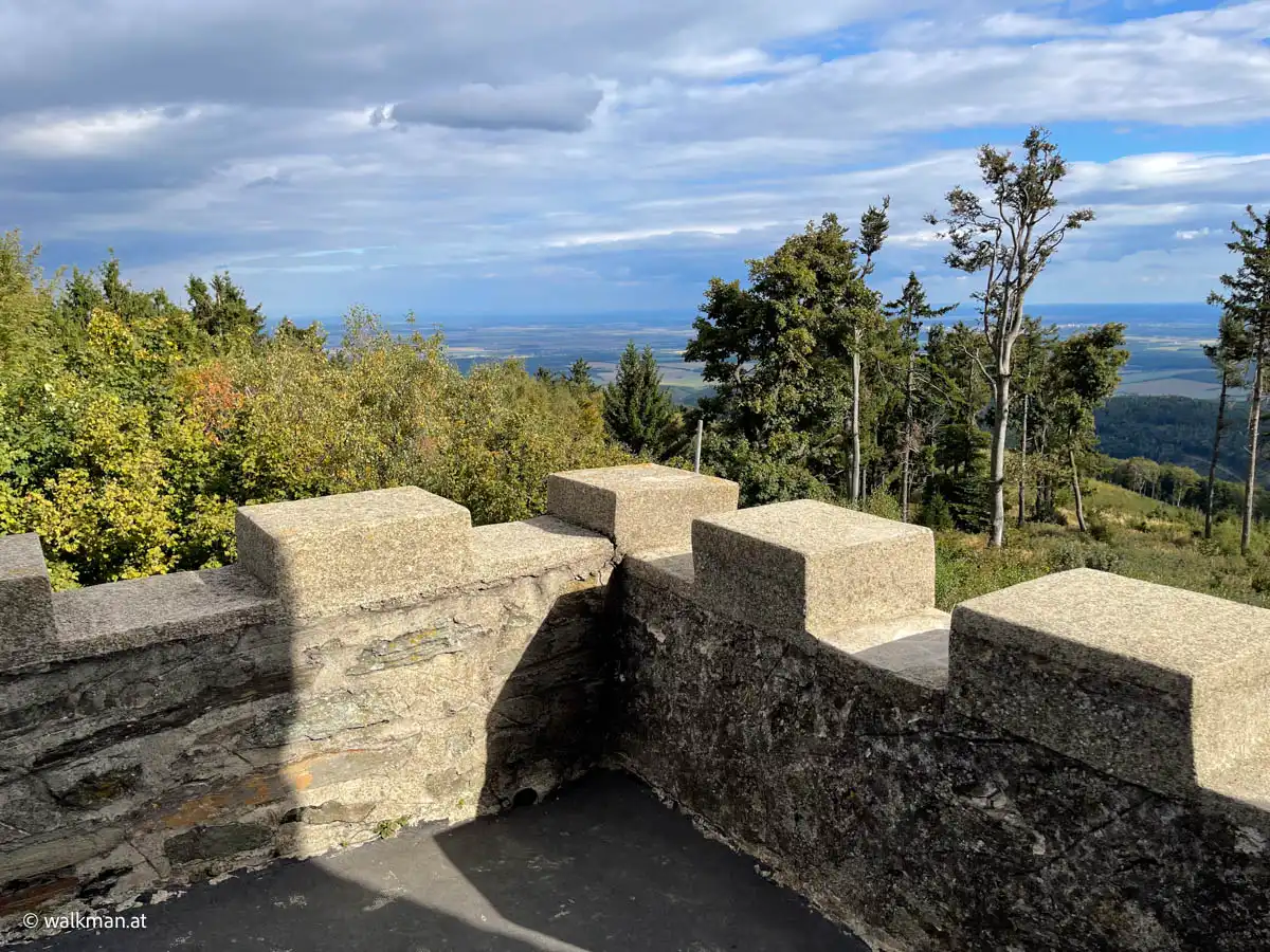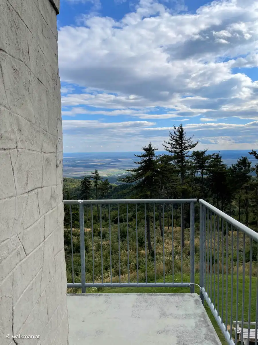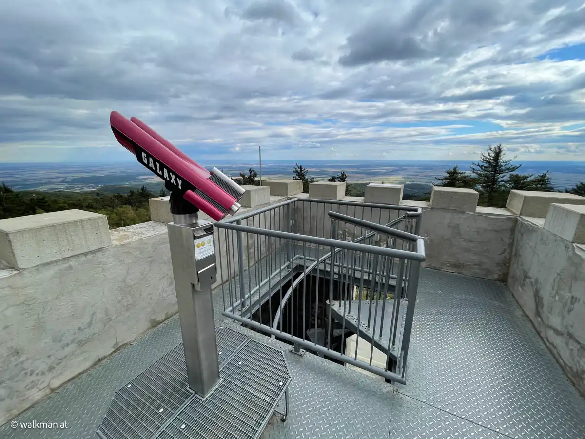 Die enge Wendeltreppe rauf war schnell überwunden und ich genoss mit etlichen Fotos das atemberaubende 360° Panorama am höchsten Punkt des Burgenlands.
