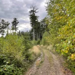 Also weiter. Zügig. Den großen Parkplatz, mit dem Landesdenkmal, an der Bundesstraße, querend gehts auf der anderen Seite wieder in den Wald rein. Das Lokal hier oben beim Parkplatz, als „Ranch“ oder Steakhouse bekannt gewesen, scheint übrigens schon seit einigen Jahre geschlossen zu sein?!? Auch jetzt war es zu.