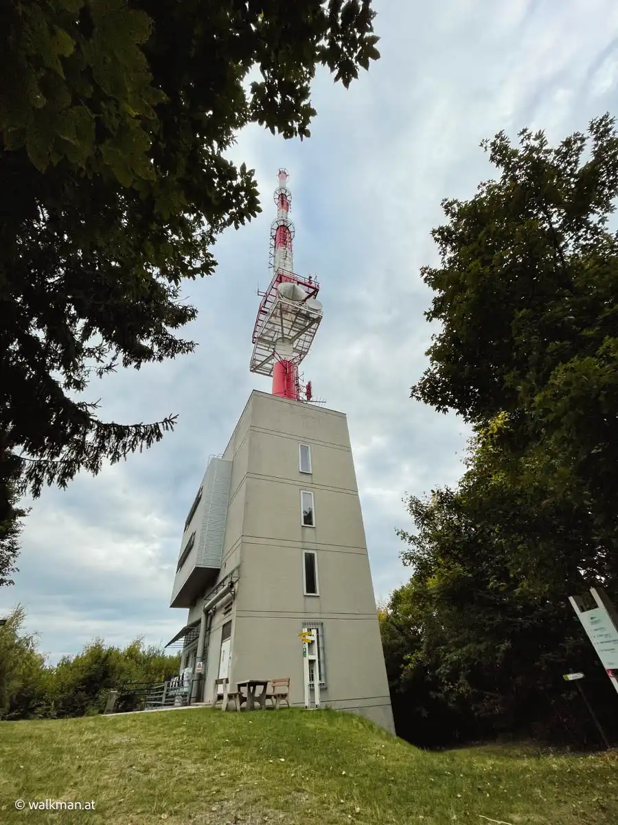 Die letzten Meter waren dann, trotz steigender Anzahl an sperrigen Gebüschen, nur mehr Formsache. Der „Rambo“ in mir suchte sich den Weg durch die Wildnis. Und trat bald darauf auf die gepflegte Wiese beim Aussichtsturm. „Ein kleiner Schritt für mich, aber ein großer Schritt für mein Ego.“