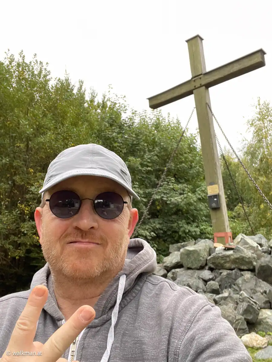 Das genoss ich jetzt erstmal. Mit vielen, vielen Fotos. Neu war es für mich ja nicht. Hier oben bin ich bereits drei Mal gestanden. Aber niemals so weit zu Fuß. Etwa 30 Minuten Fußmarsch von hier ist ja der Parkplatz an der Bundesstraße, von dem man auch bequem hierher spazieren kann. Den Gipfel jedoch zu Fuß zu erklimmen – das war meine eigene, höchstpersönliche Premiere, auf die ich in diesem Moment unendlich stolz war.