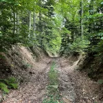Was auf diesem Abschnitt zu erwähnen wäre: Dieser ist Teil der Mountainbikestrecke am Geschriebenstein, und hier gehts ganz schön steil bergab.