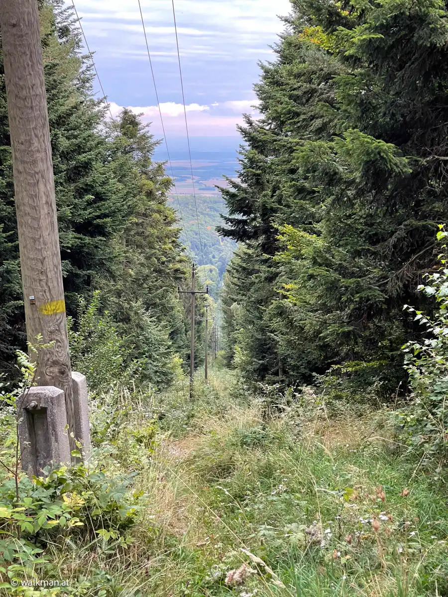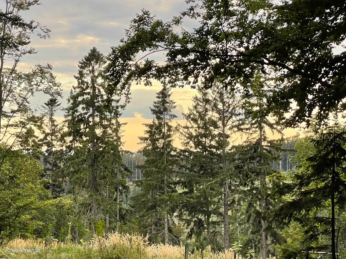 Das letzte Highlight dieser Tour lag nun hinter mir und vor mir noch etwa 7 Kilometer Strecke. Und es dämmerte. Also zügig weiter. Richtung Rechnitz retour. Diese Kilometer sind zwar vom Gehen her, weit einfacher als der Aufstieg. Aber haben auch ihre Tücken. Bei den Weggabelungen stets darauf achten den richtigen Weg zu nehmen. Und den zu erkennen ist an manchen Passagen gar nicht so einfach. Wäre schön hier die Strecke vielleicht etwas besser zu markieren.