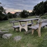 Aussicht darf man hier aber keine erwarten. Aber dafür eine Bank-Tisch-Kombi. Und die nutzte ich für eine weitere Banane, viel Wasser und eine weitere Zigarette. Tja, wieder die Gewohnheit … Die Sendeanlage ist aber sehenswert. Tipp-Top gepflegt und nach wie vor in Betrieb. Ferngesteuert und fernüberwacht, wie mir das Info Schild verkündete. Und sogar mit einem Diesel-Notstromaggregat ausgestattet für den Fall eines Stromausfalls.