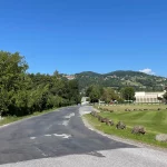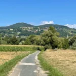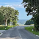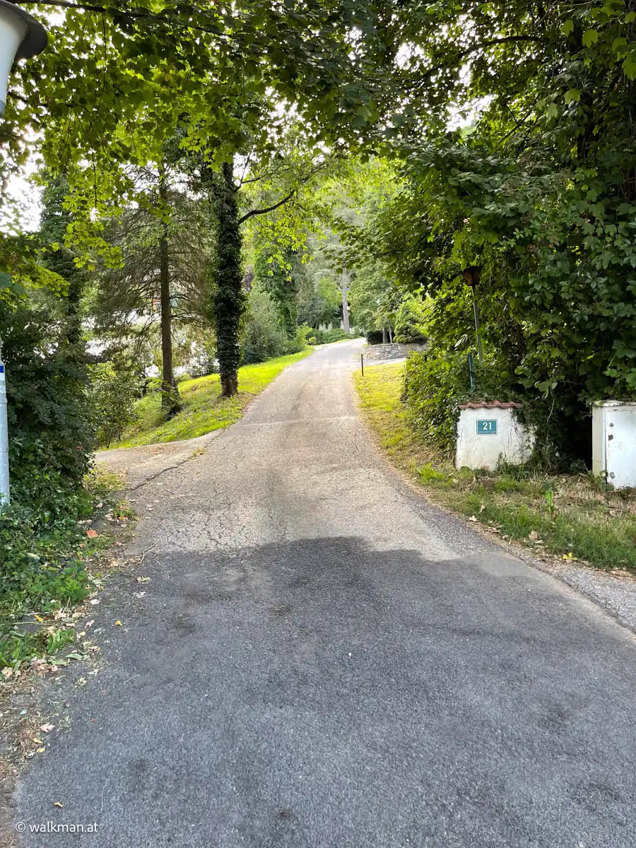Hier weg führt nun, ein stückweit, eine asphaltierte Straße den Berg hinauf. Teils in praller Sonne gelegen. Ein zweischneidiges Schwert für uns. Die Füße sagen: „Ja bitte, das gefällt uns“, die Körpertemperatur „Nein danke. Bist wo ang’rennt?““ Unsere Schweißtropfen liegen vermutlich heute noch dort auf der Straße und dampfen.