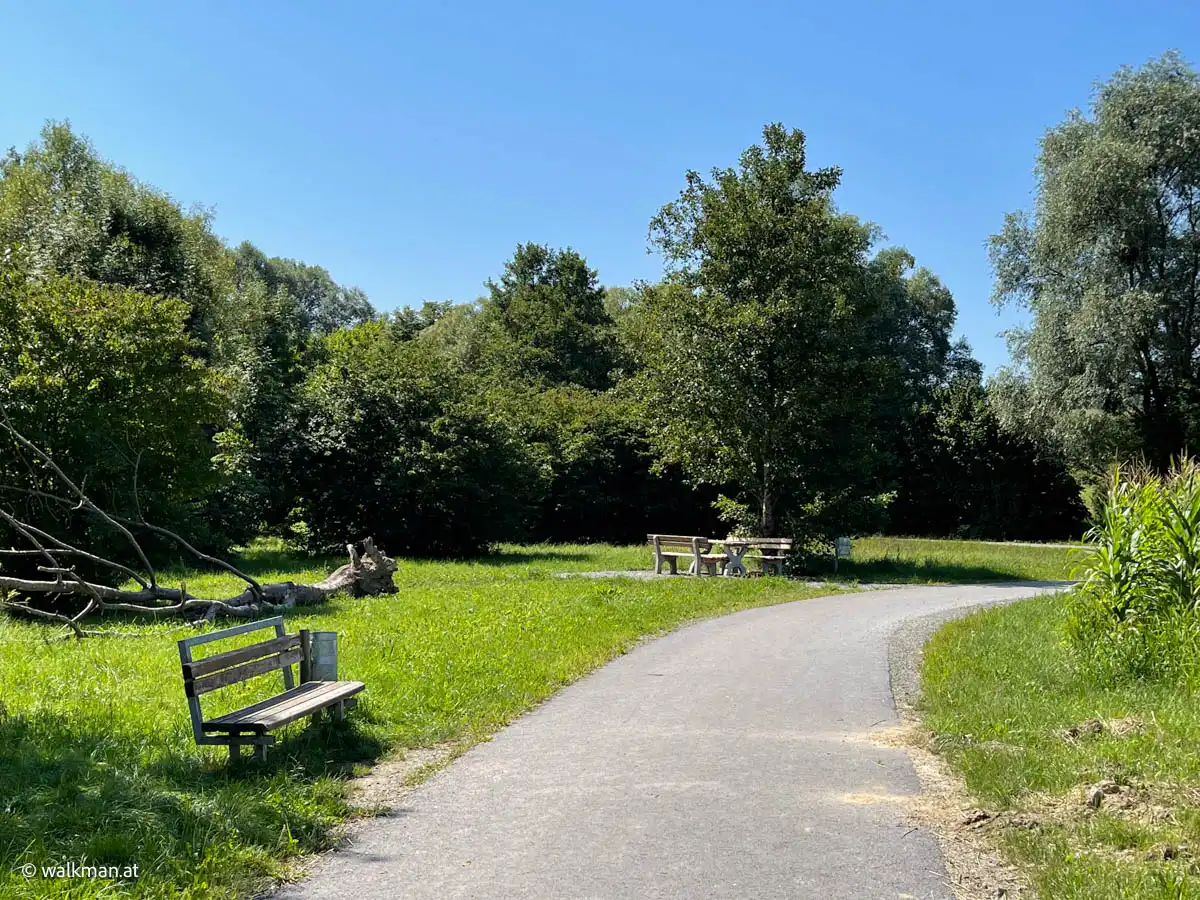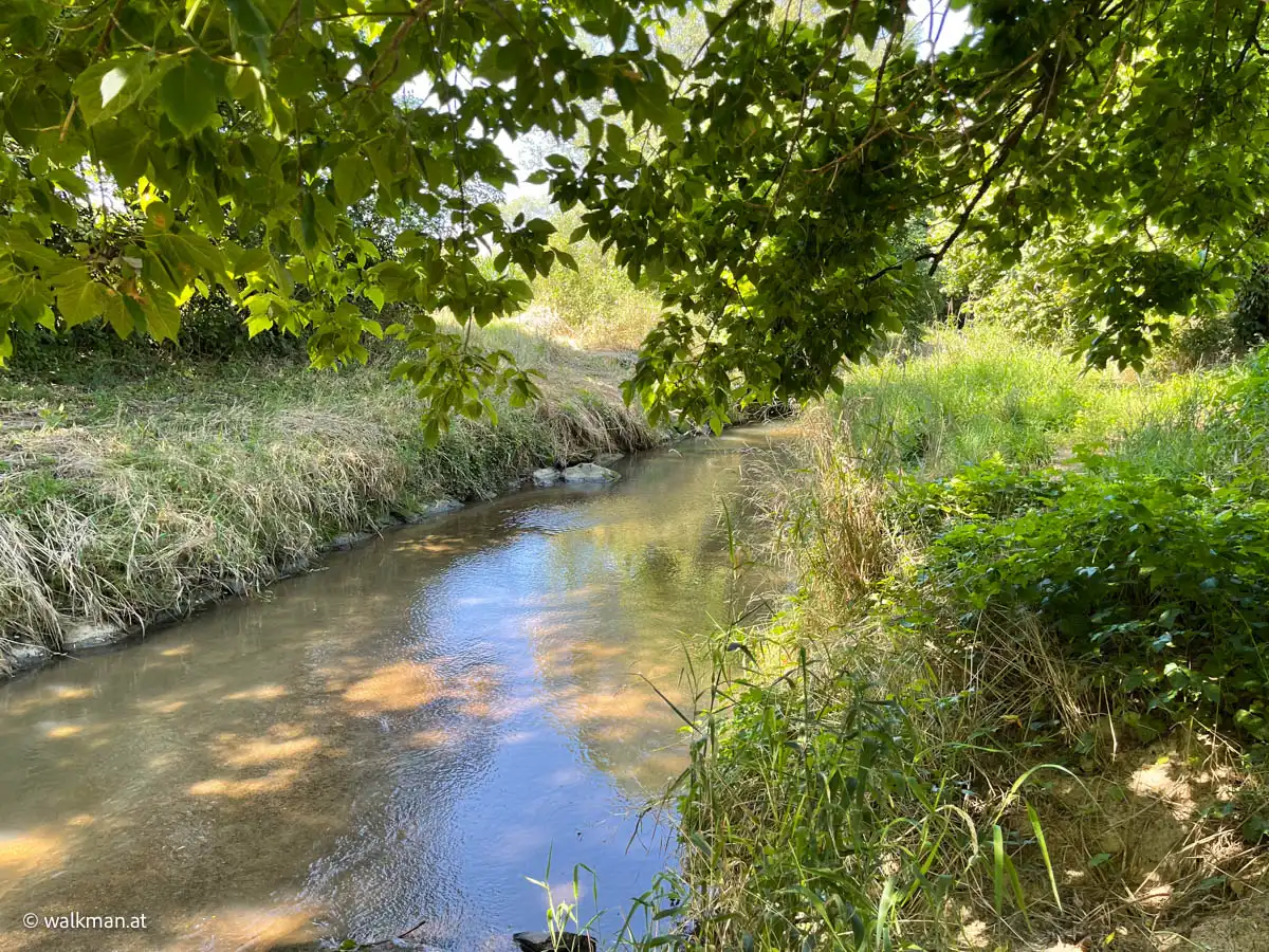 Da kommt uns eine unverhoffte Überraschung in Form einer (vermutlich?) Alten Mühle gerade recht. Diese war nirgends erwähnt oder verzeichnet. Sie ist einfach plötzlich da. Ein wunderschönes, schattiges Platzerl mit zwei kleinen Teichen und noch dazu mehreren Sitzgelegenheiten. Gleich neben dem Weg. Also jetzt mal ausgiebige Pause. Und wieder zu Kräften kommen.
