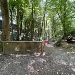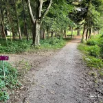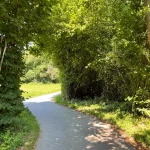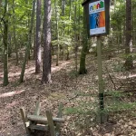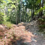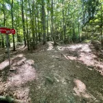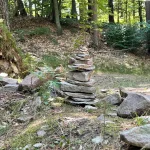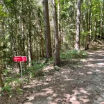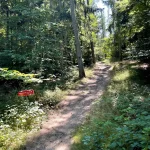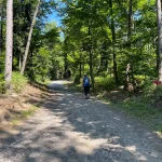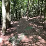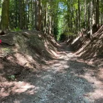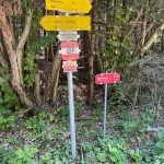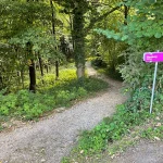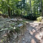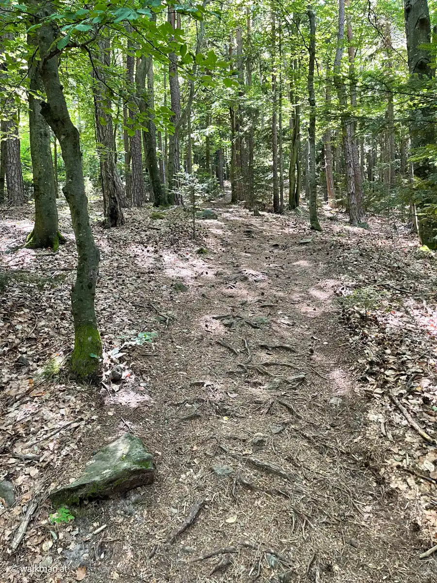 Ein Blick auf mein Handy sagt mir etwa 200-300 Meter später, jetzt gehts wieder in den Wald hinein. Untertänigsten Dank! Was sich aber nicht ändert, ist die Steigung. Stetig bergauf. Und das, jetzt wieder untermalt, von Wurzeln und Steinen.